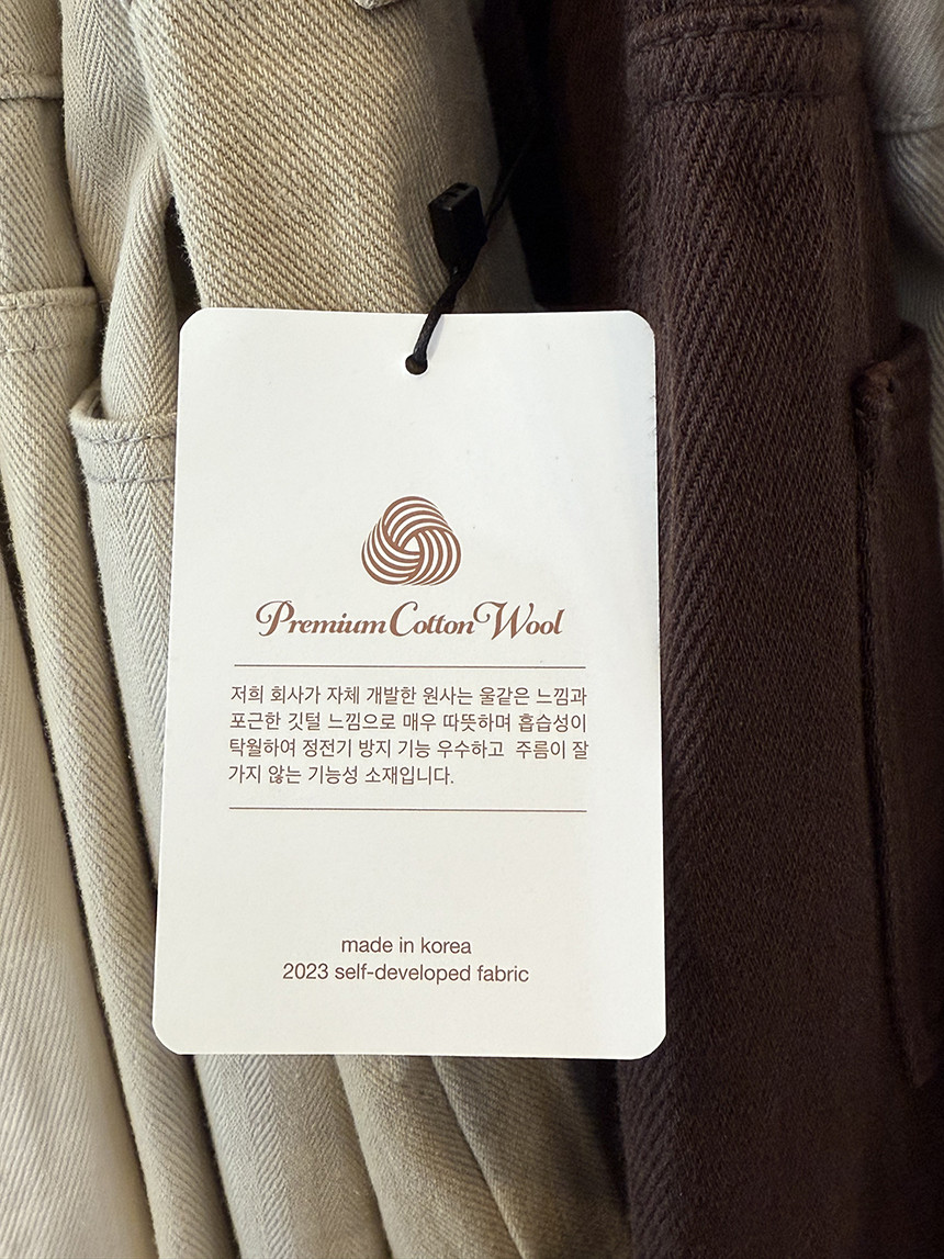 [소재] 프리미엄 코튼 울 자제개발 원사로 울같은 느낌과 포근한 깃털 느낌으로 보온성이 좋고 흡수성이 탁월하여 정전기 방지가능한 기능성 소재