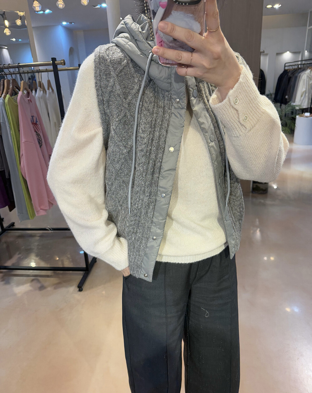 [디테일] 앞판은 니트 / 뒤는 패딩으로 보온력과 디자인을 모두 잡은 베스트