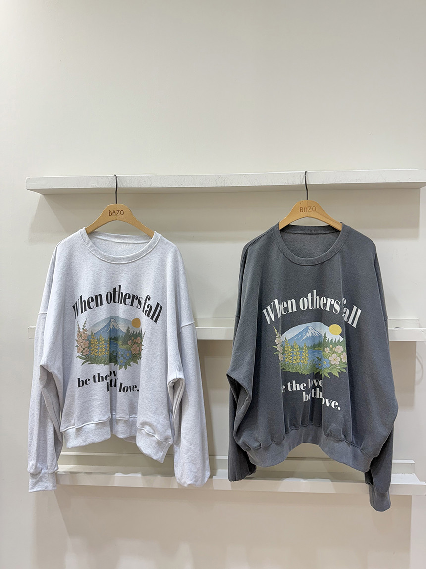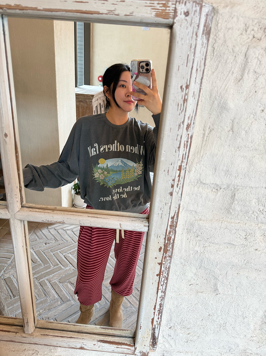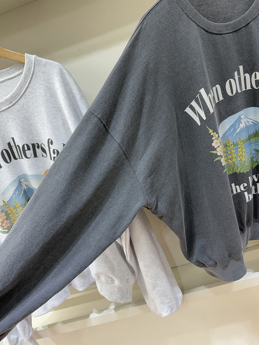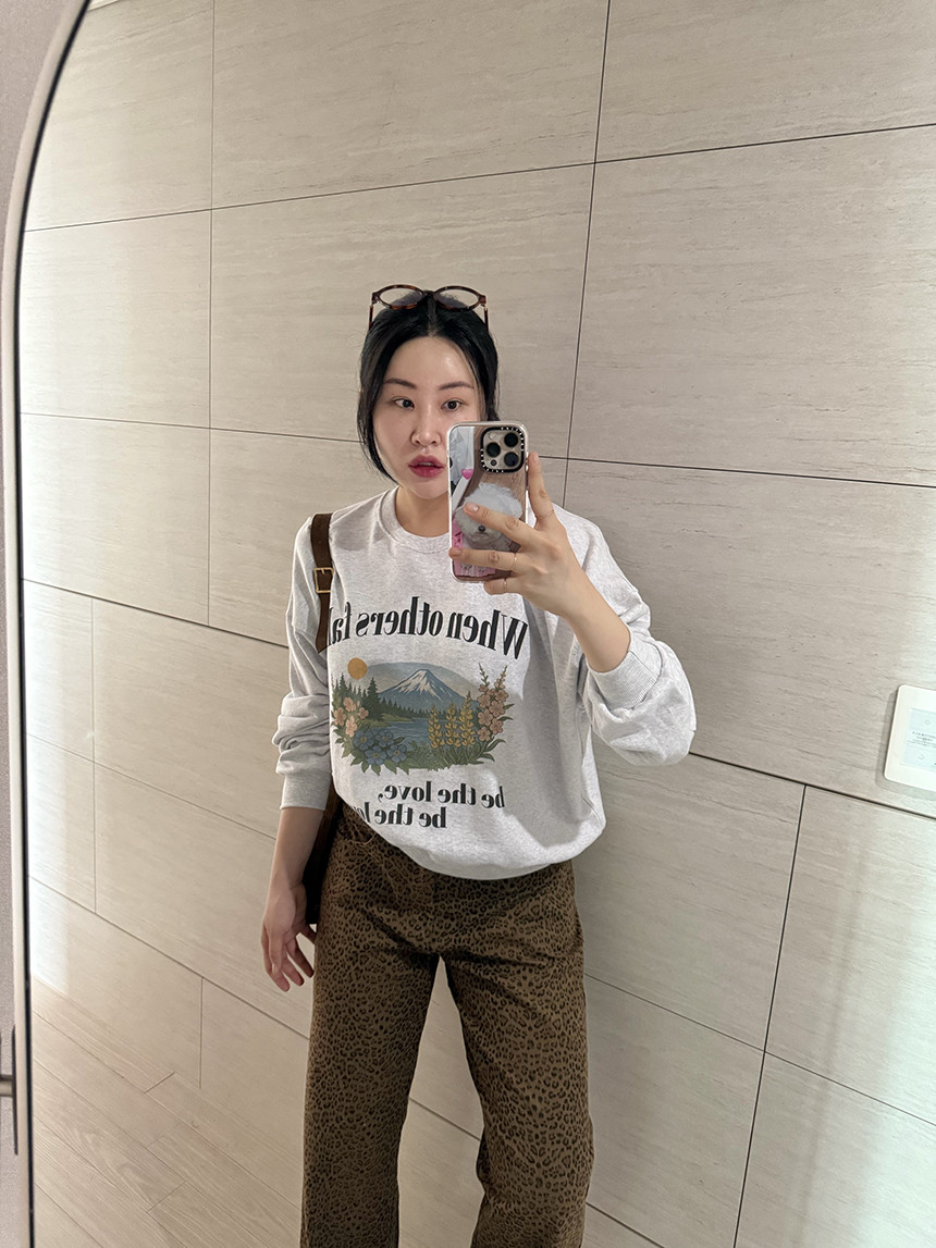 여유있는 품 + 은은한 프린팅으로 여성스러운 맨투맨