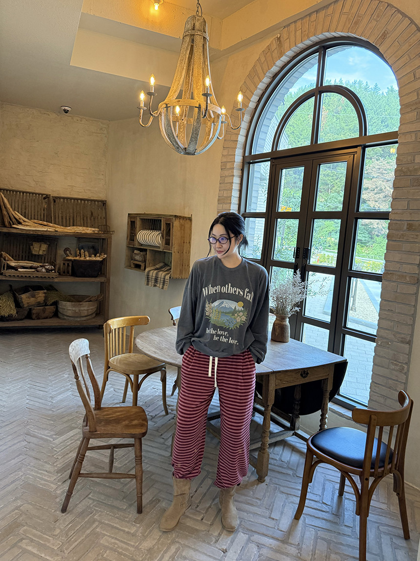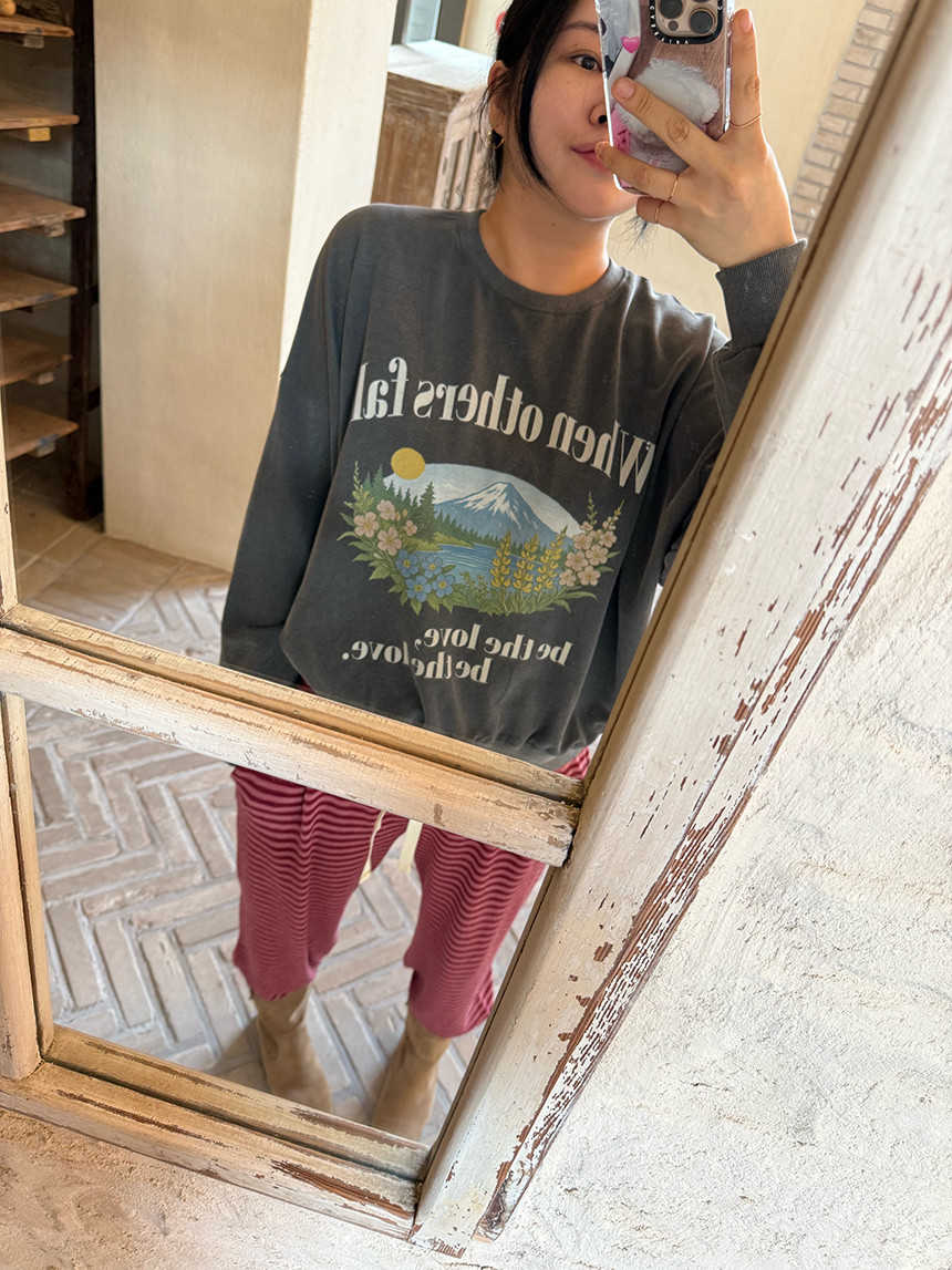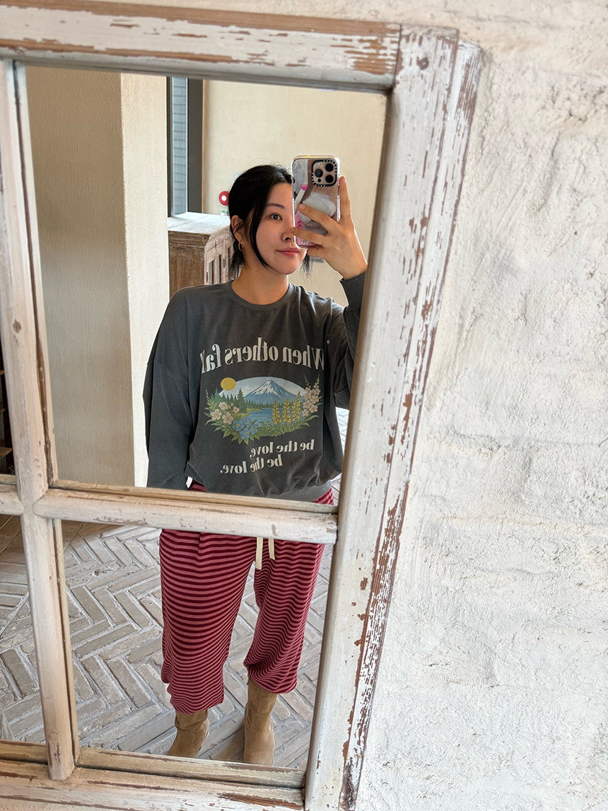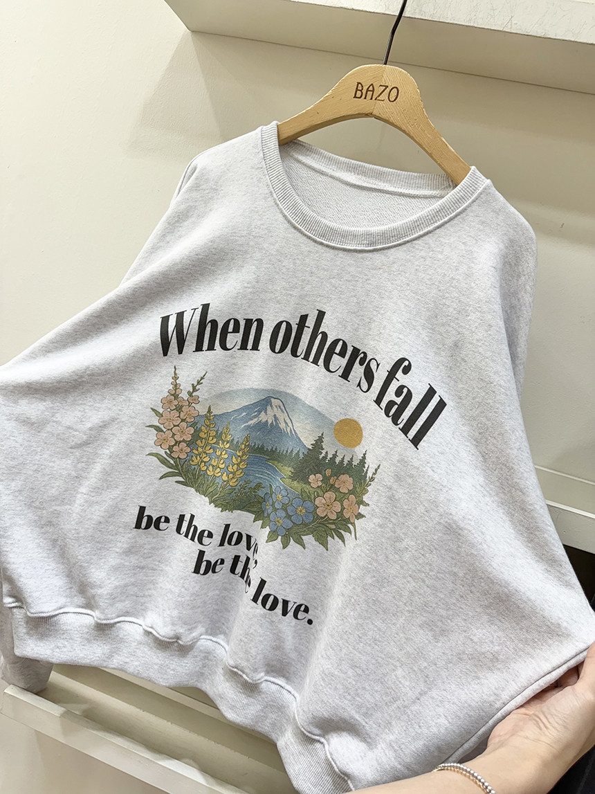 여유있는 품 + 은은한 프린팅으로 여성스러운 맨투맨