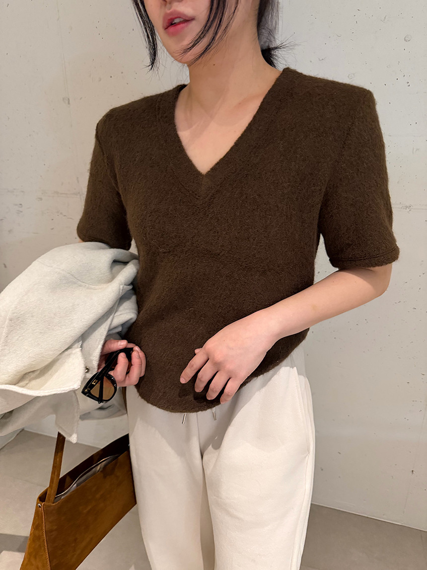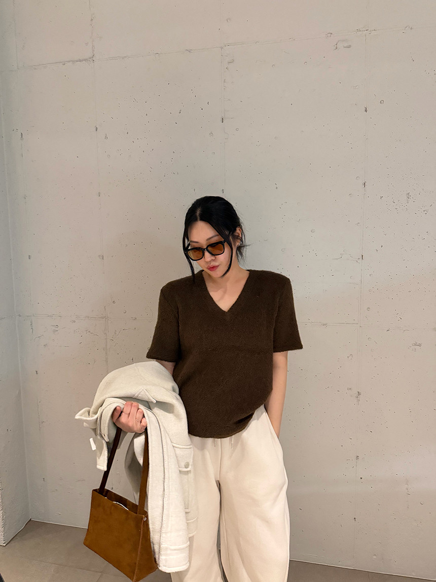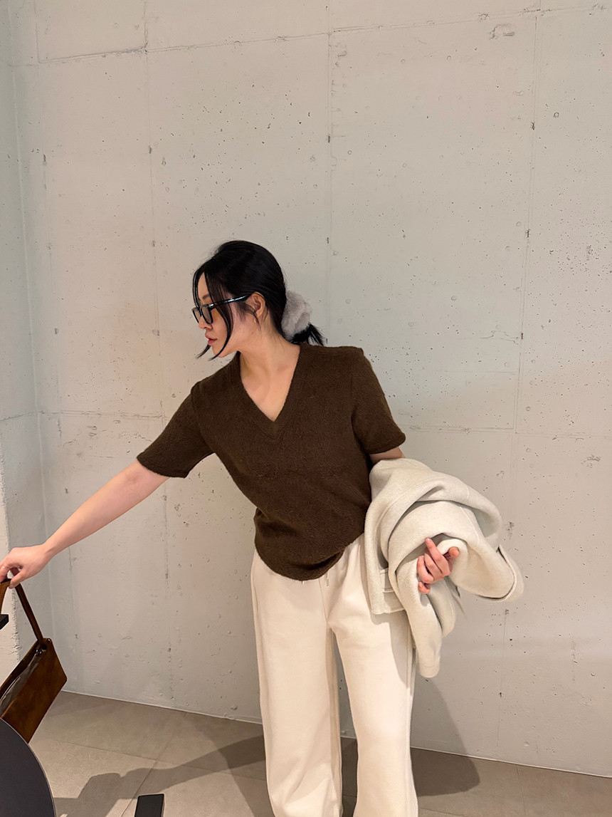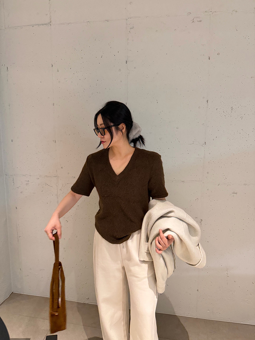 브이넥으로 여리여리함 UP+ 아우터 속 활용도 너무 좋은 니트 반팔티-