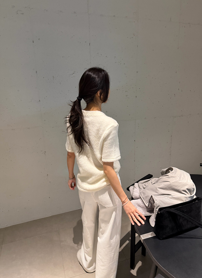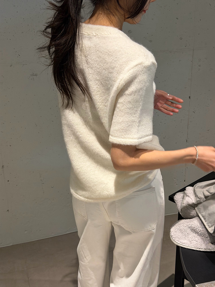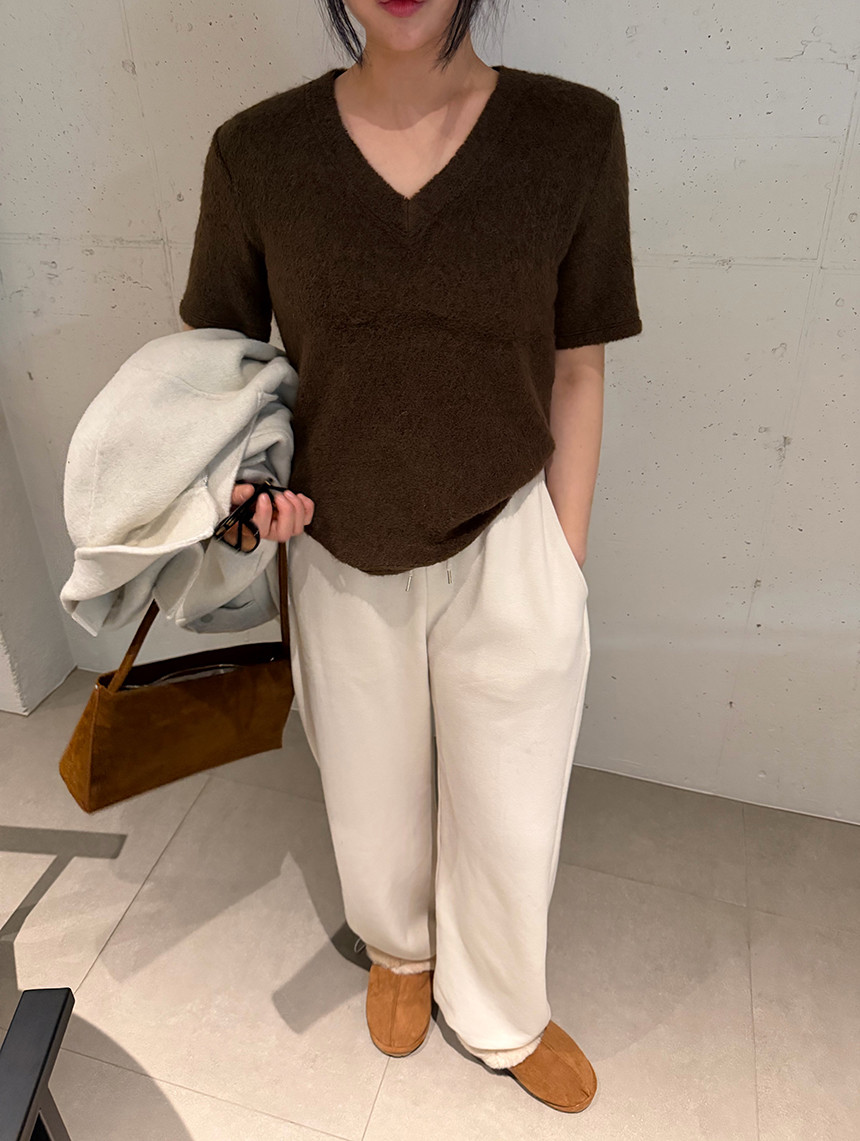브이넥으로 여리여리함 UP+ 아우터 속 활용도 너무 좋은 니트 반팔티-