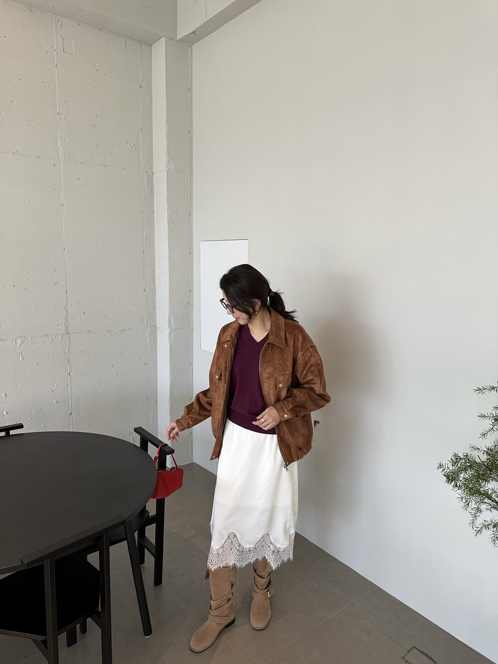 [코디] 이런 실키한 소재의 스커트는 레이어드하는 맛에 입는거라 사계절 모두 활용 가능함 |