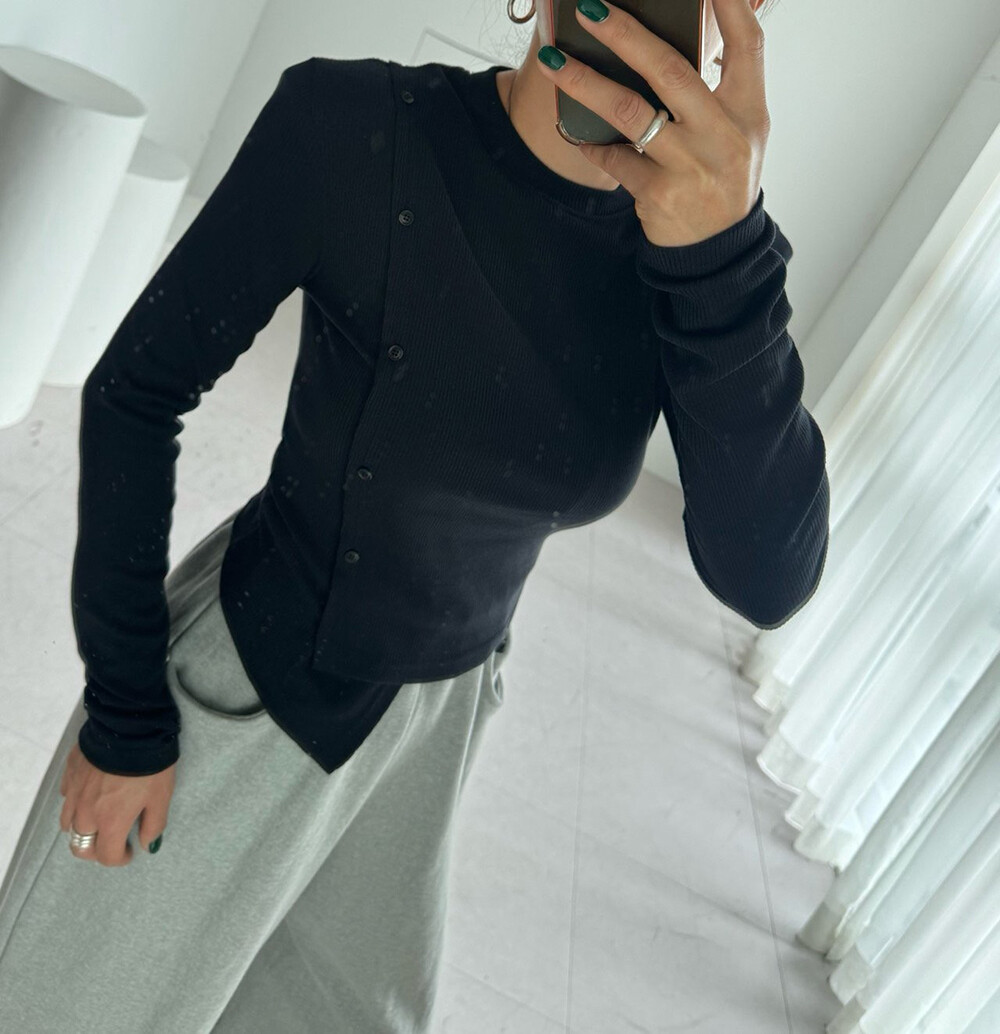 바디 라인을 한층 더 날씬해 보이게 하는 골지 긴팔 티셔츠예요