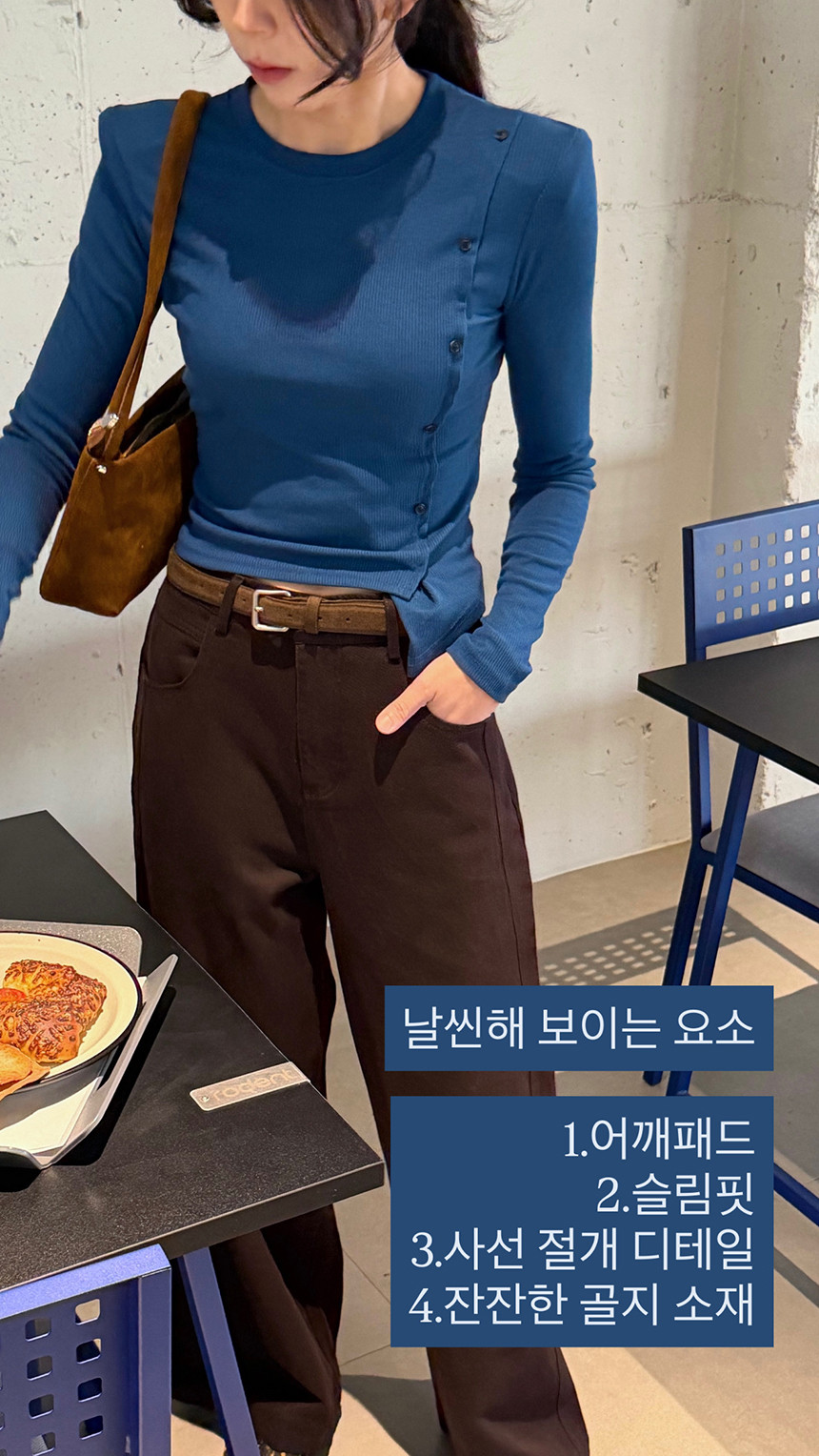 몸매라인을 딱 잡아주는 골지티 어깨패드로 라인까지 예쁘게-