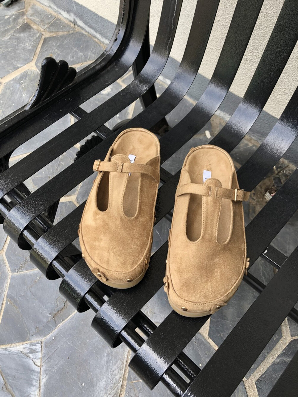 뮬 슬리퍼 디자인으로 편안하게 신고 벗기 좋으며