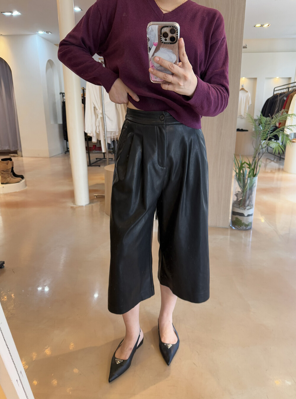 에코 레더 소재로 데일리하게 입기 좋은 버뮤다 팬츠예요