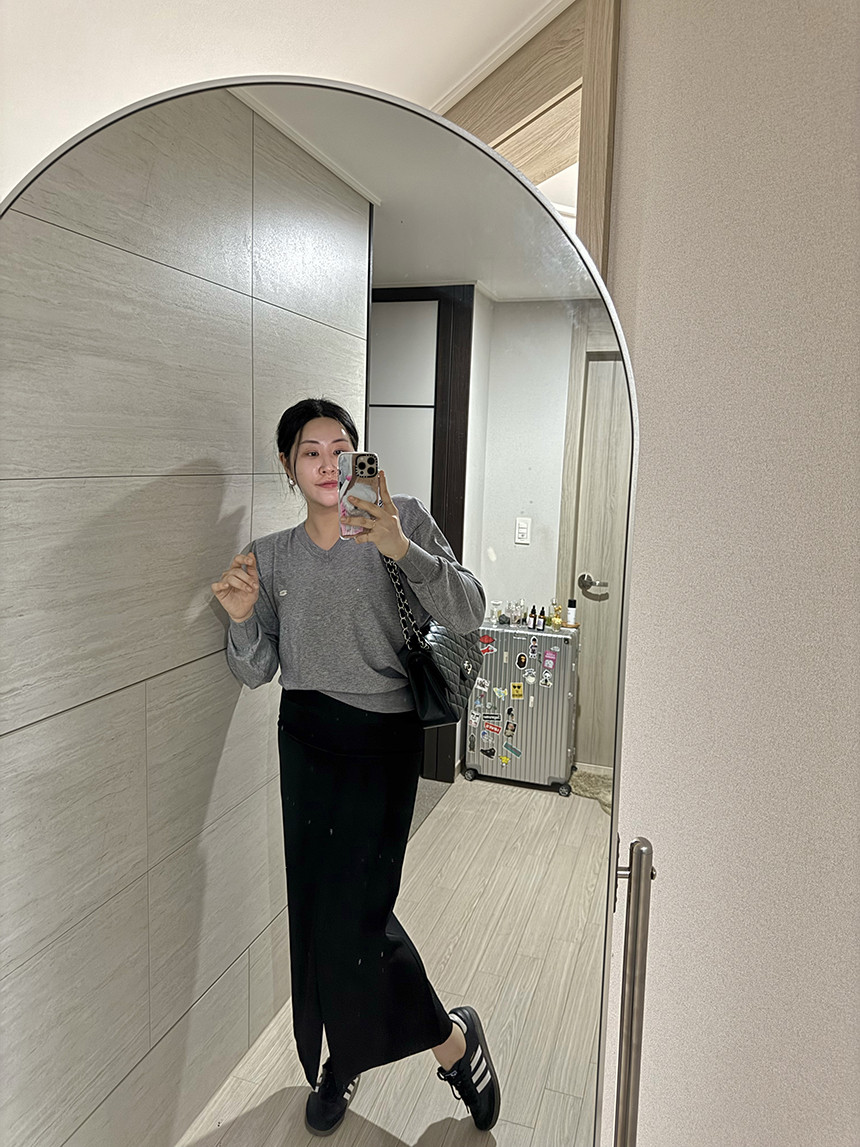 맥시 스커트의 롱한 기장으로 성숙한 무드를 연출해주며