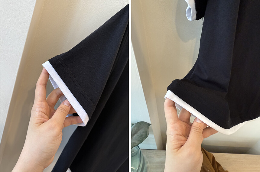 단독으로 착용시 심심하지 않게 소매 컬러 배색 포인트를 줬고