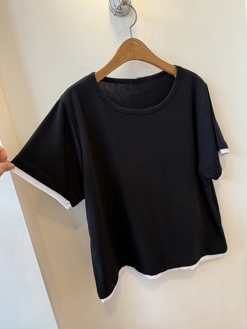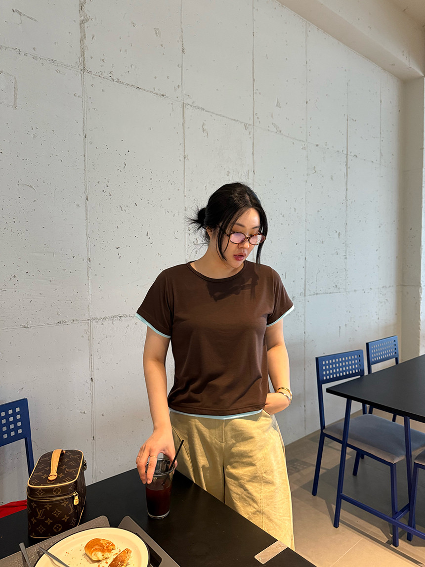 [디자인] 적당한 루즈핏에 컬러 배색으로 가볍게 포인트준 라운드 티셔츠