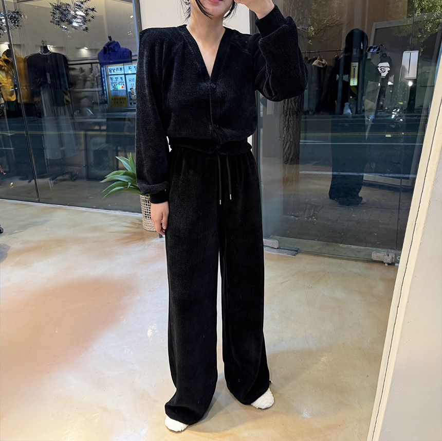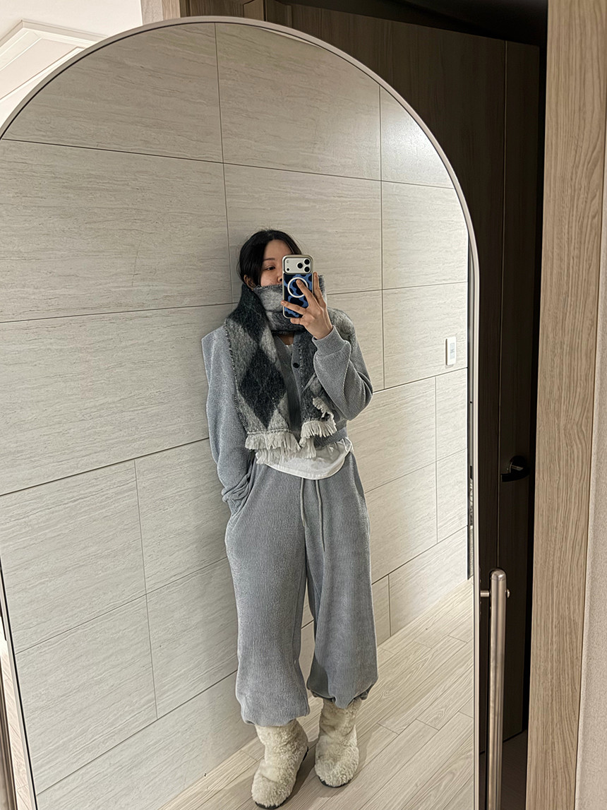 벨로아와 골덴의 중간 느낌? 쫀득하니 신축성도 좋고 골지 느낌이라 늘씬해 보여요