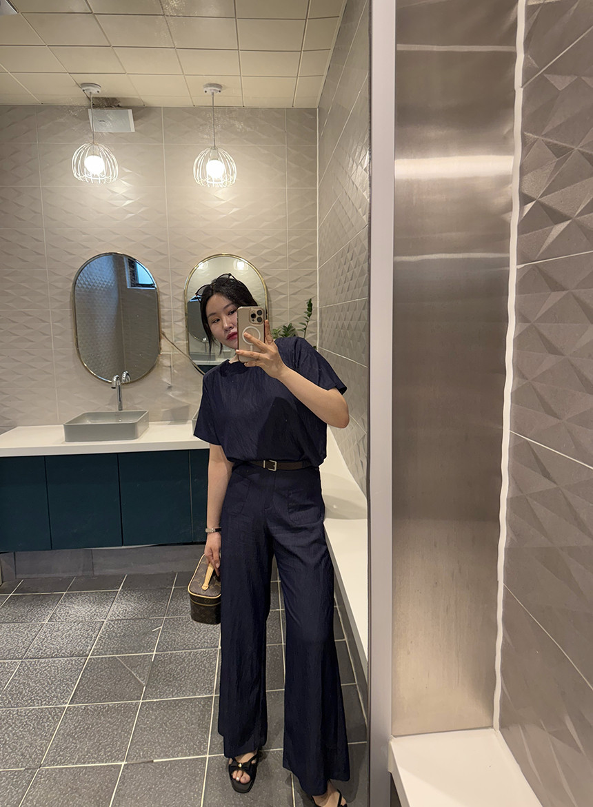 블라우스와 함께 코디 해 여름 정장 셋업으로