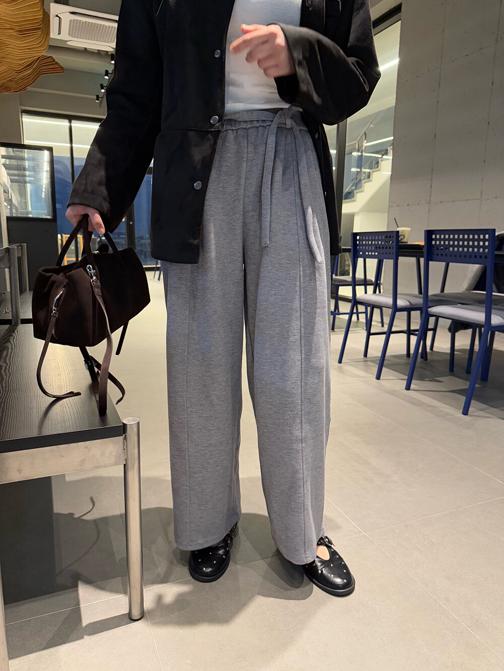 [소재] 폴리 혼방으로 도톰하고 힘있는 소재로 슬랙스느낌으로도 코디 가능한 트레이닝 팬츠