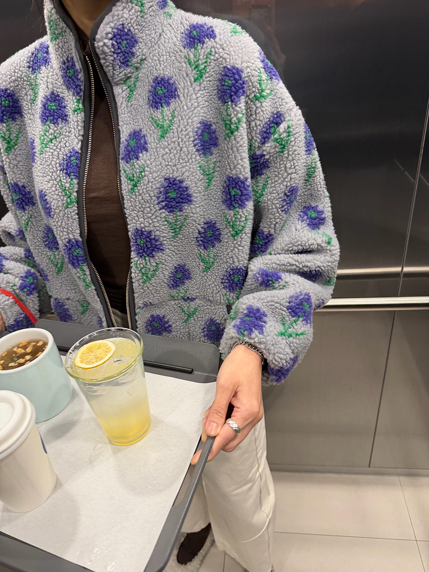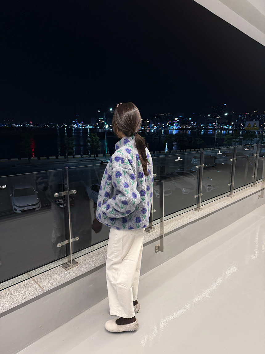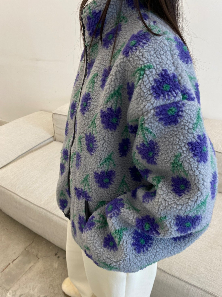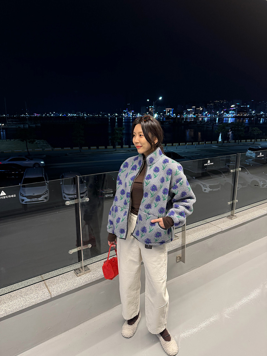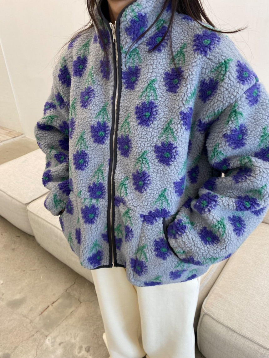 흔치 않은 꽃 프린팅 뽀글이 점퍼로 귀염 뽀짝! 이중 합포 후리스 안감으로 더욱 따뜻해요