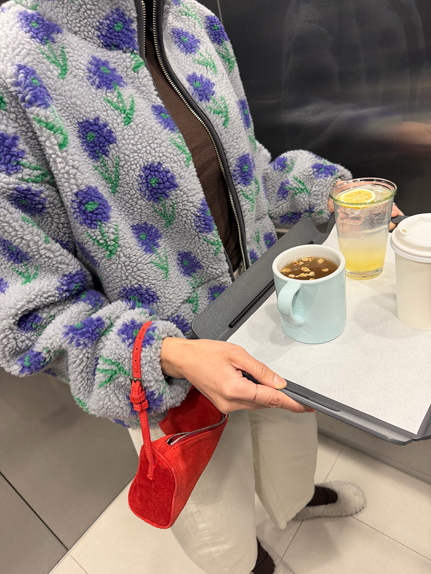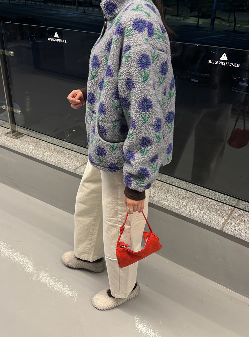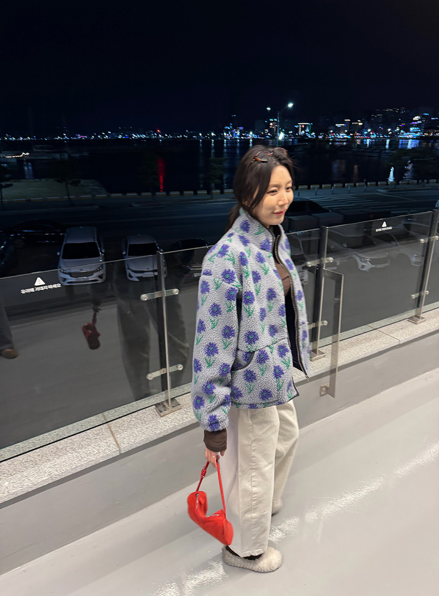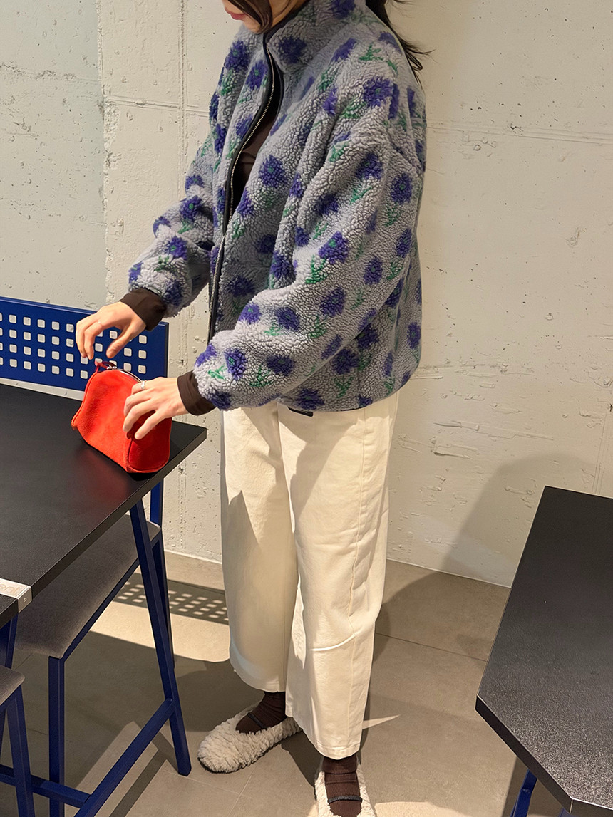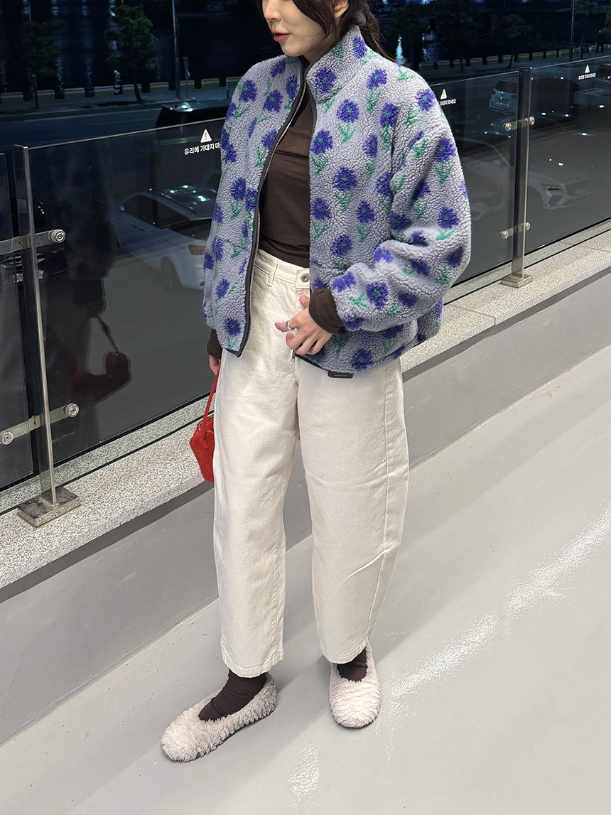 흔치 않은 꽃 프린팅 뽀글이 점퍼로 귀염 뽀짝! 이중 합포 후리스 안감으로 더욱 따뜻해요