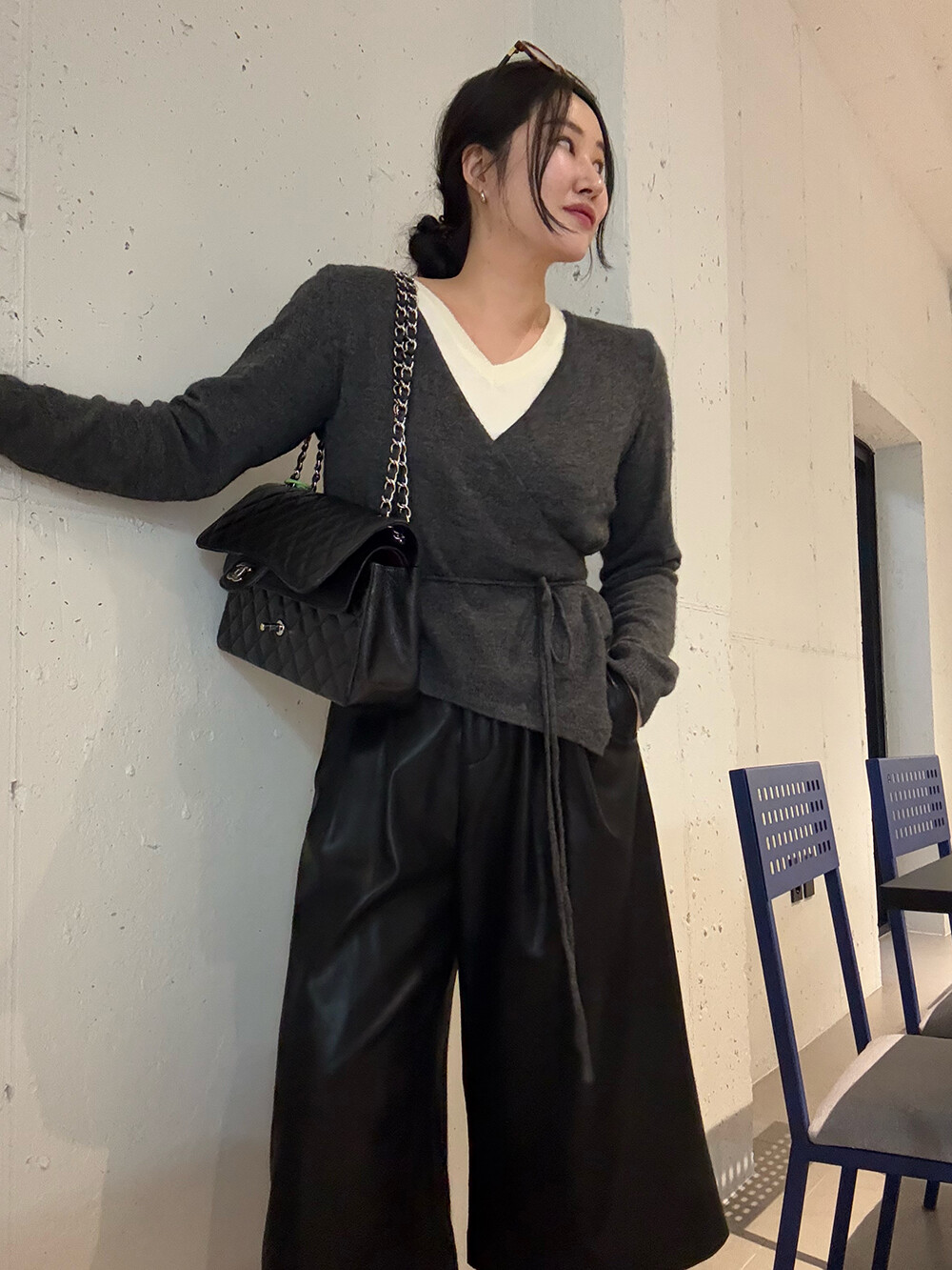 [디테일] -허리끈 세트로 라인잡아 연출 가능하며 전체 오픈시 가디건 입은듯한 느낌으로 코디 가능 -밑단 언발 디테일에 기장감 좋아 체형커버에 탁월한 니트
