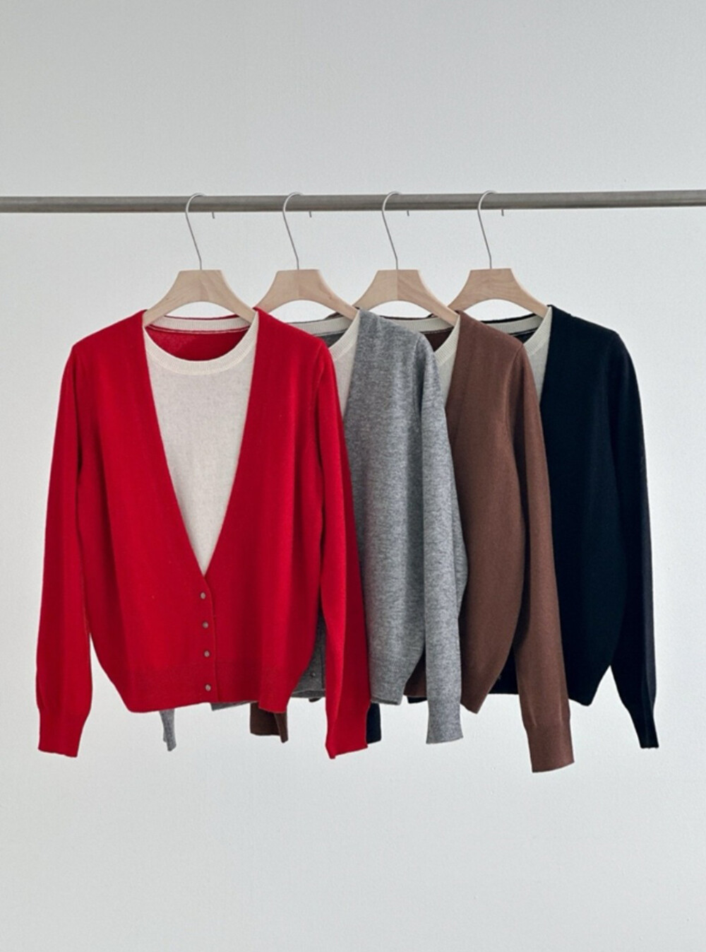 [디자인] 니트와 가디건이 합쳐진 레이어드 스타일 호불호 없는 적당한 스탠다드핏 안정감있는 라운드넥