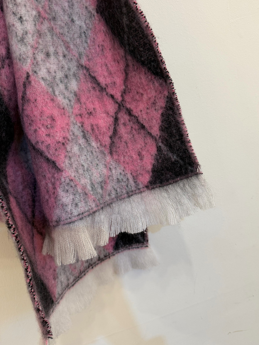 |  큼직한 체크 패턴에 컬러 배색감으로 포인트 되는 목도리