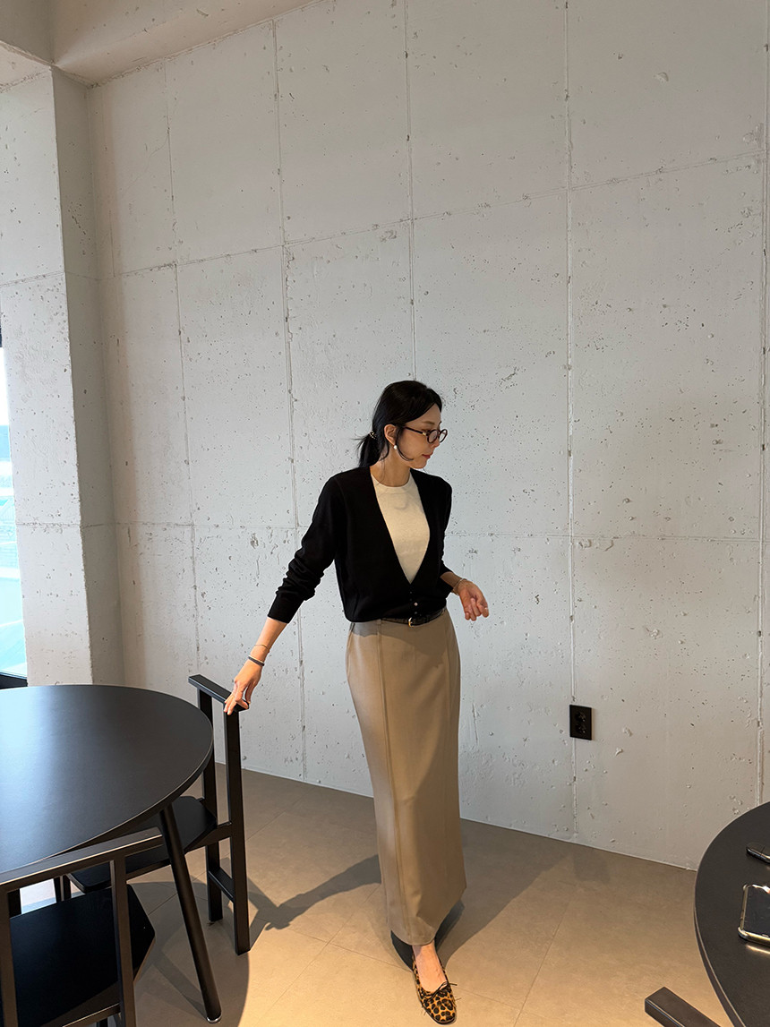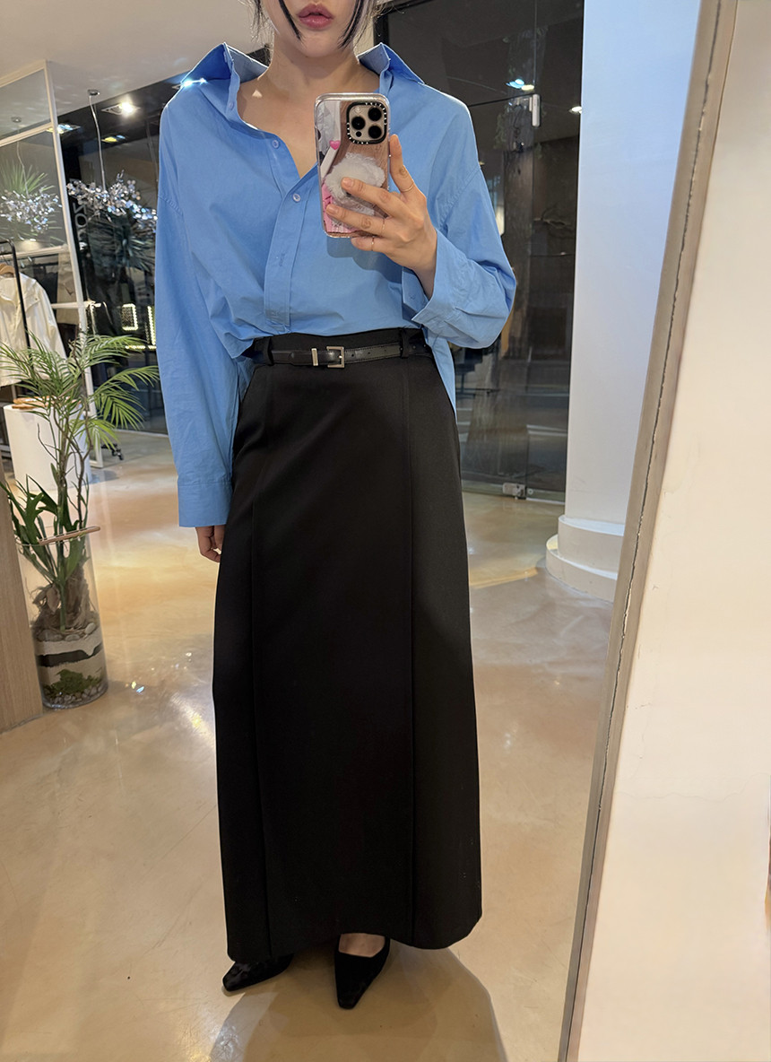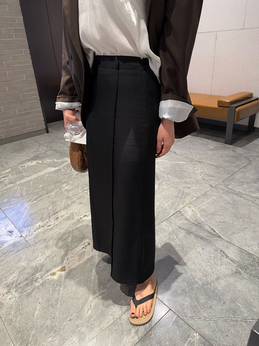 깔끔하게 떨어지는 H라인 롱 스커트에