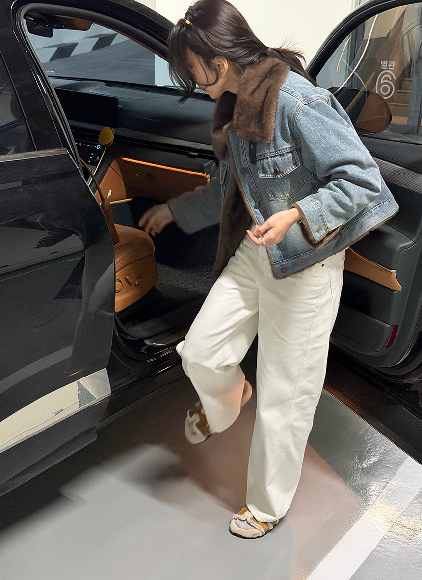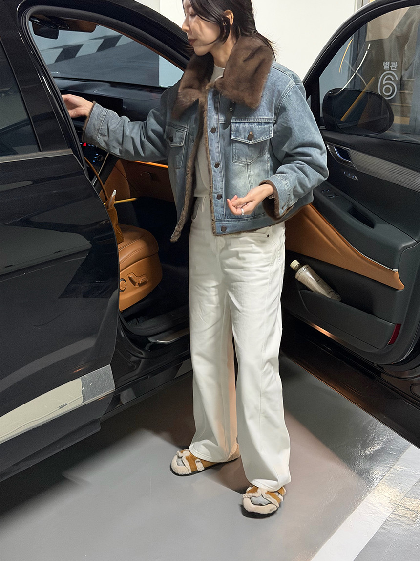 데님 워싱과 퍼 색상이 정말 고급스럽게 잘 어우러져 실물이 더 예쁘답니다 !