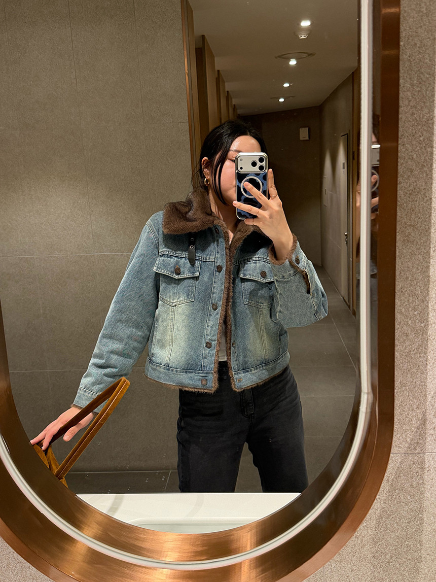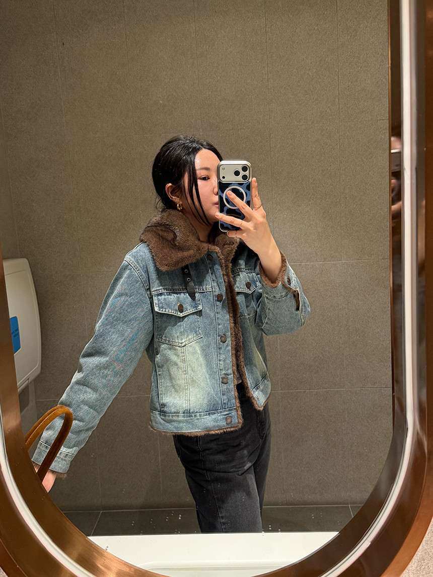 추운 겨울에도 따뜻하게 입을 수 있는 데님 자켓으로