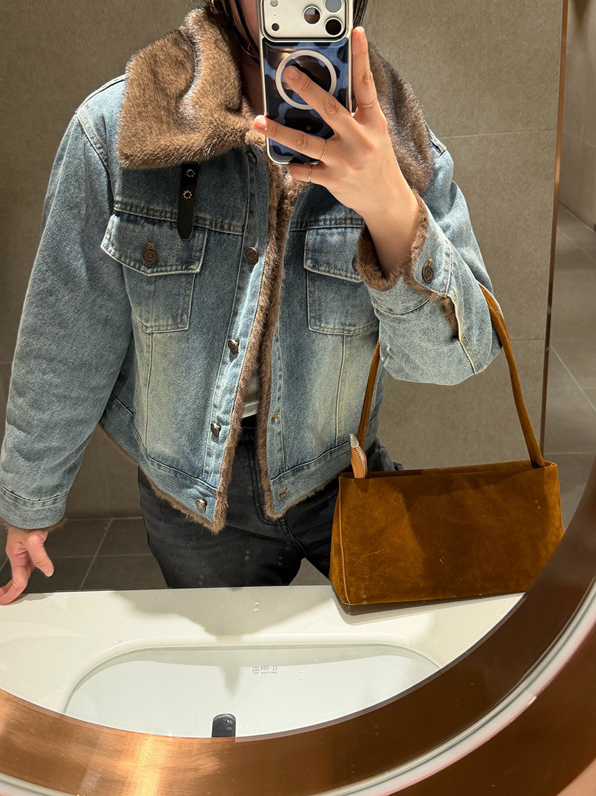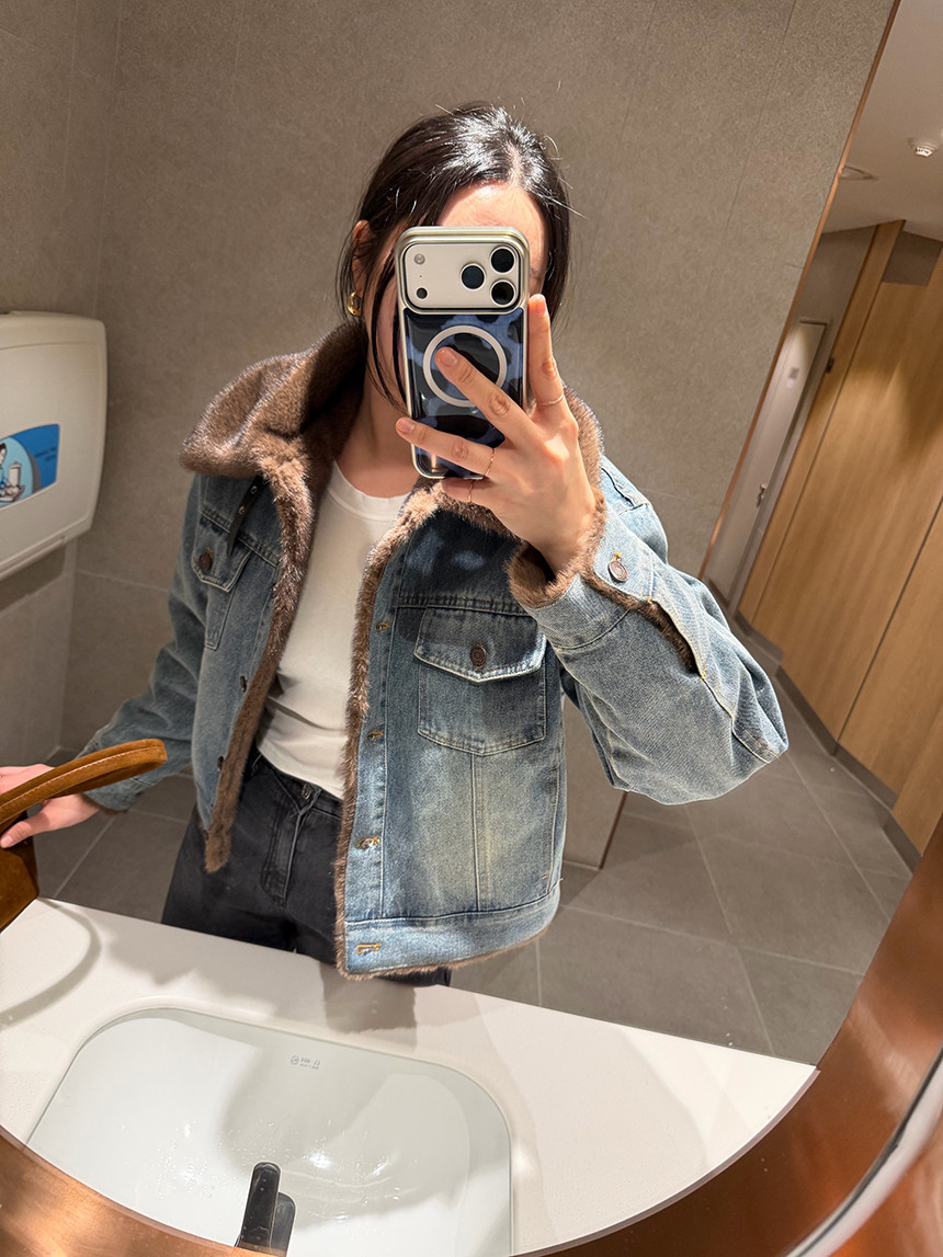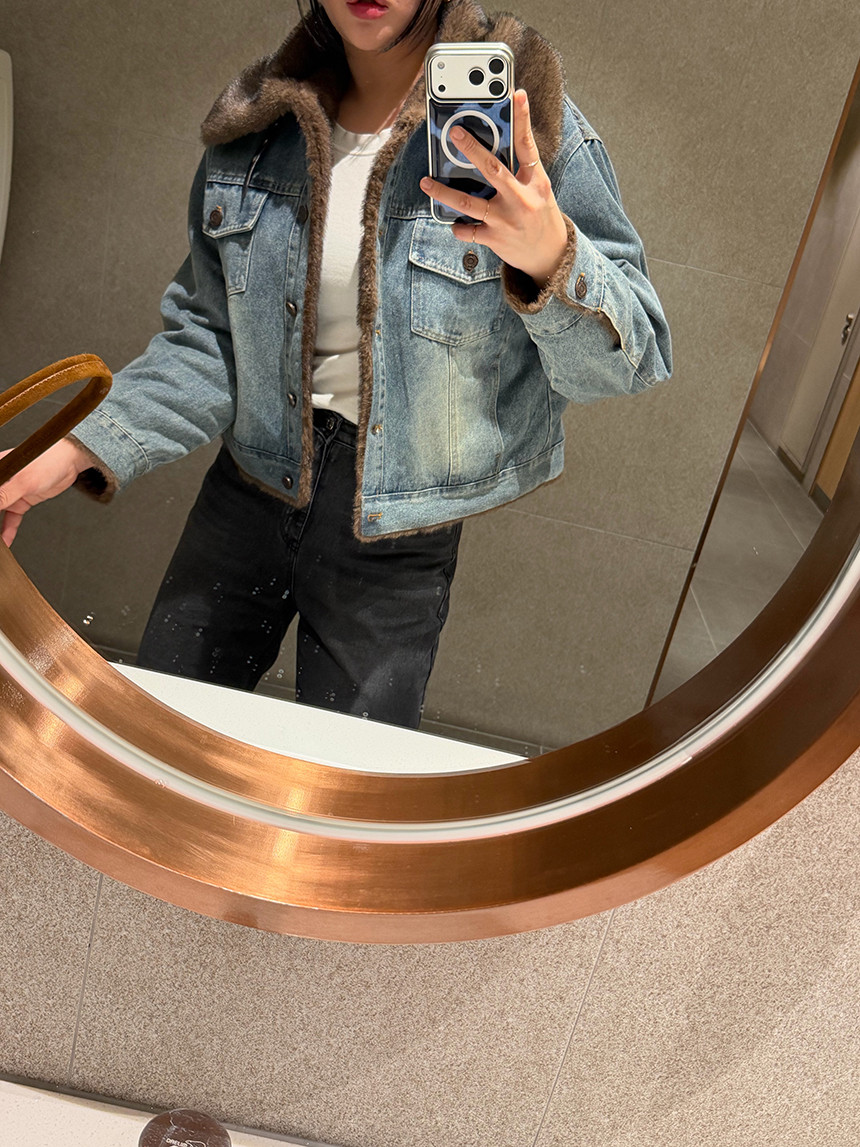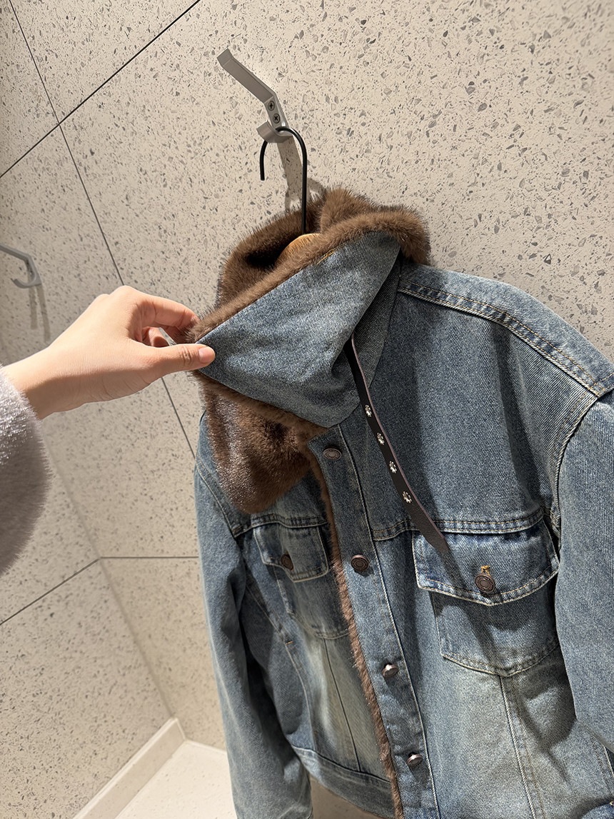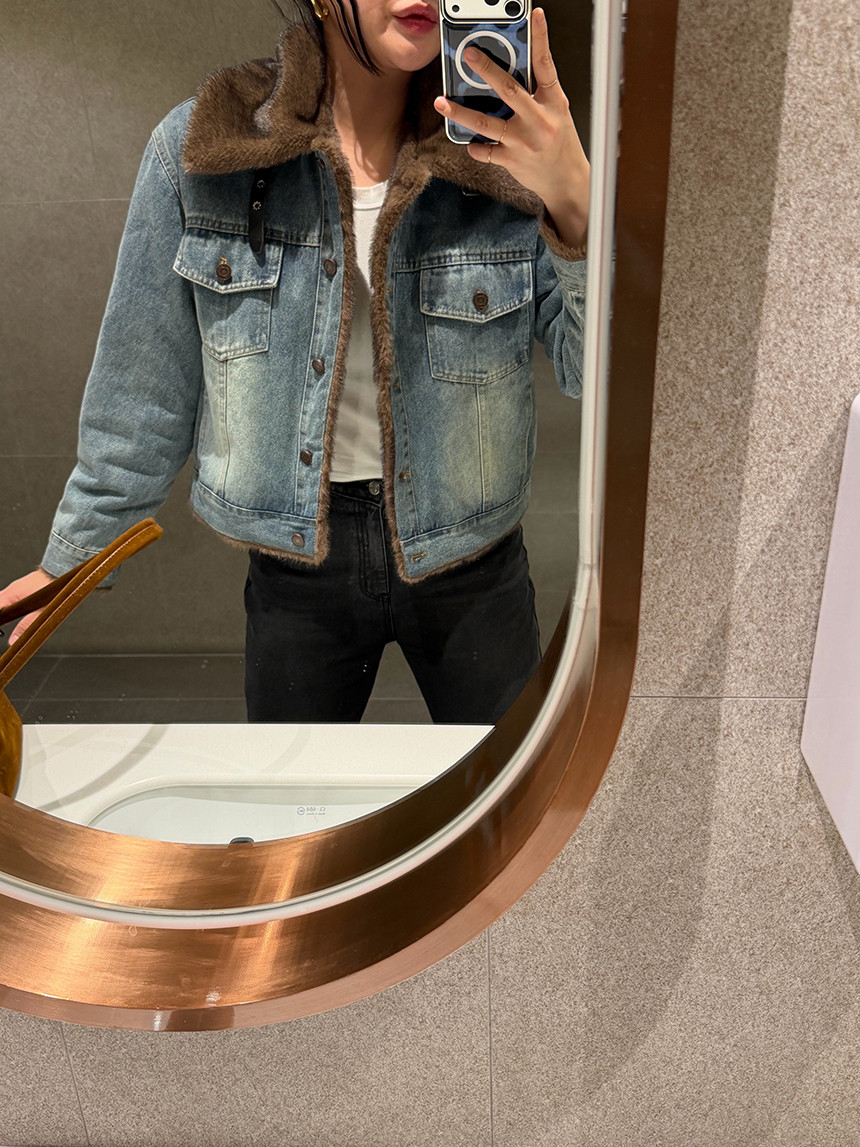 안감 전체 팔 포함 부드러운 밍크털로 나와 보온성과 스타일리쉬함을 모두 잡은 데님 청자켓