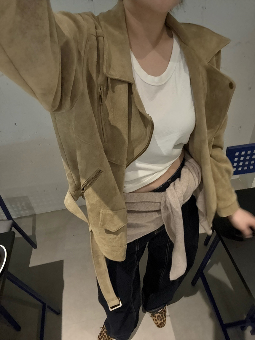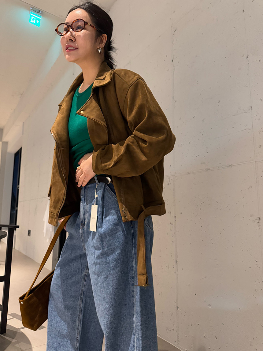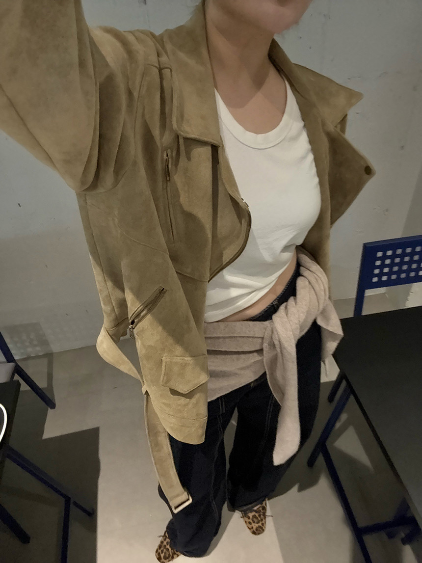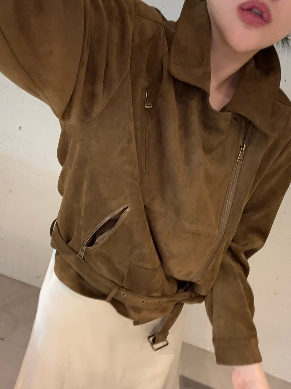 라이더 자켓이 스웨이드로 나와 고급스럽고 캐쥬얼하게-