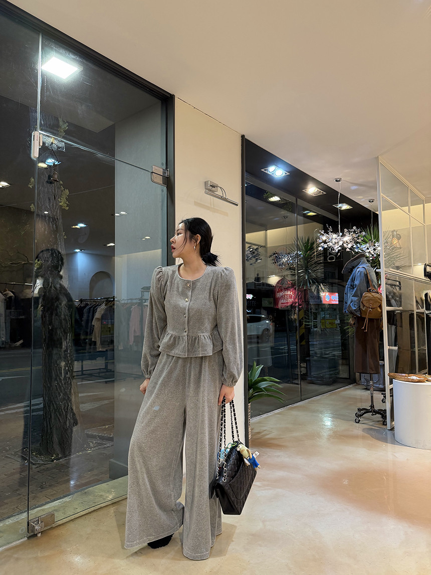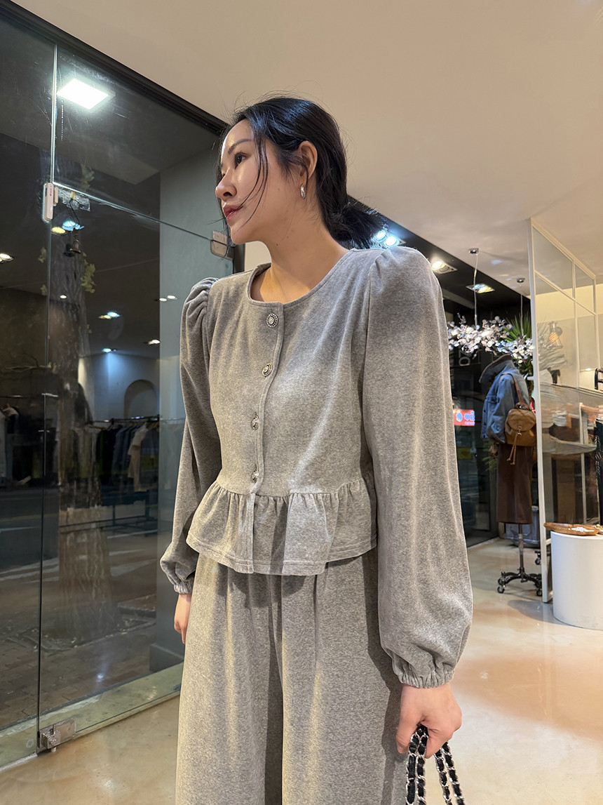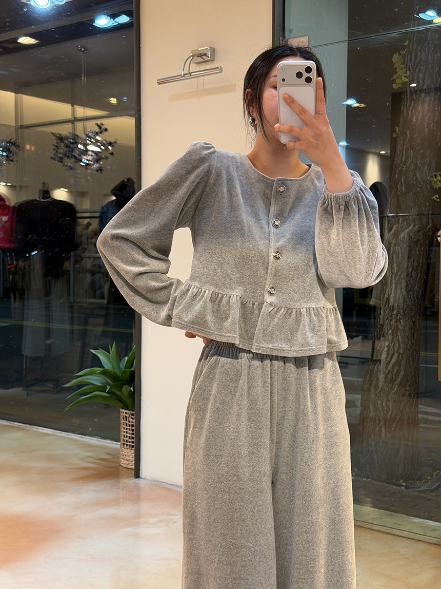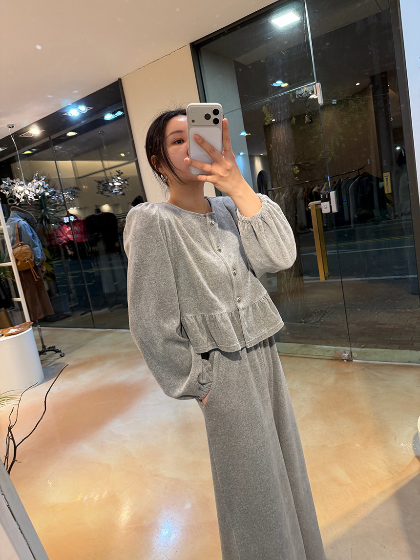상의는 적당한 어깨퍼프에 블라우스 느낌으로 러블리하게 입으실 수 있으며 자켓 이상의 퀄리티라 받아보시면 무조건 만족 하실 거에요 !