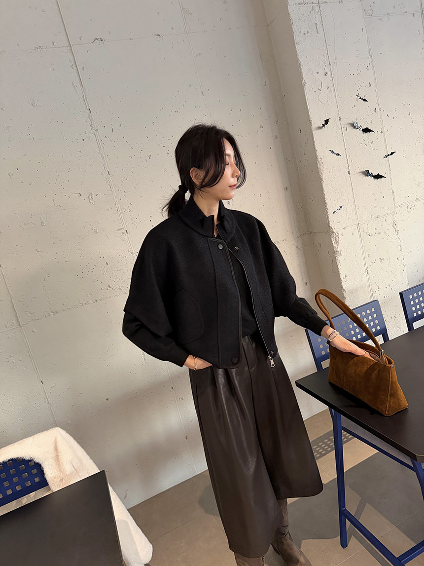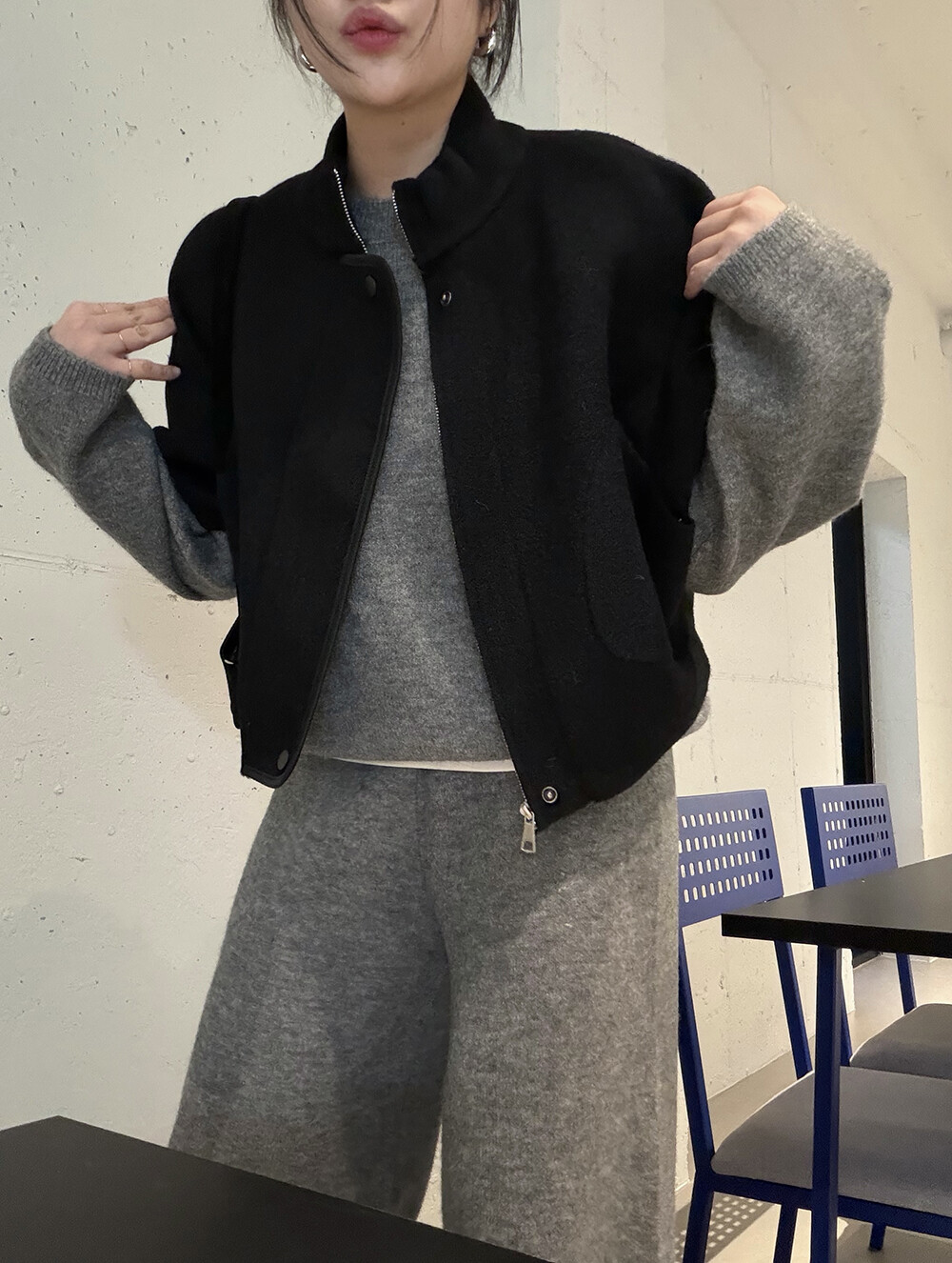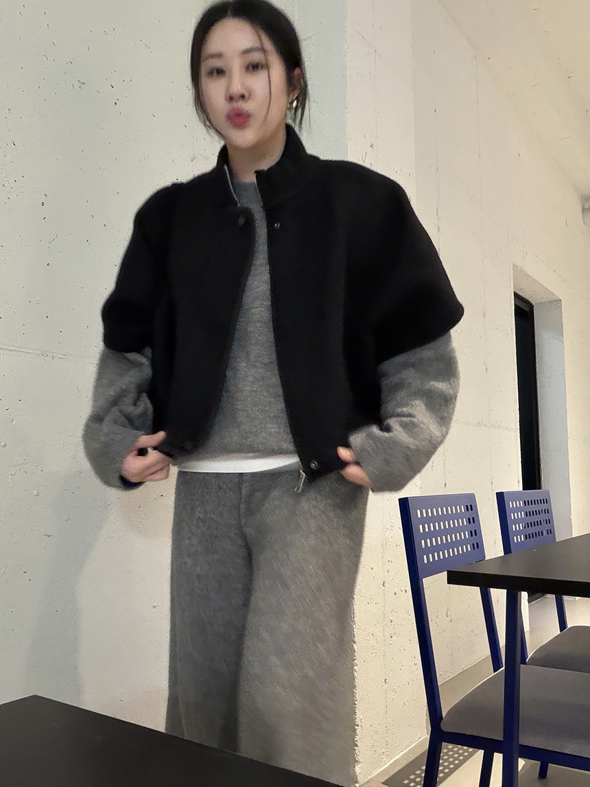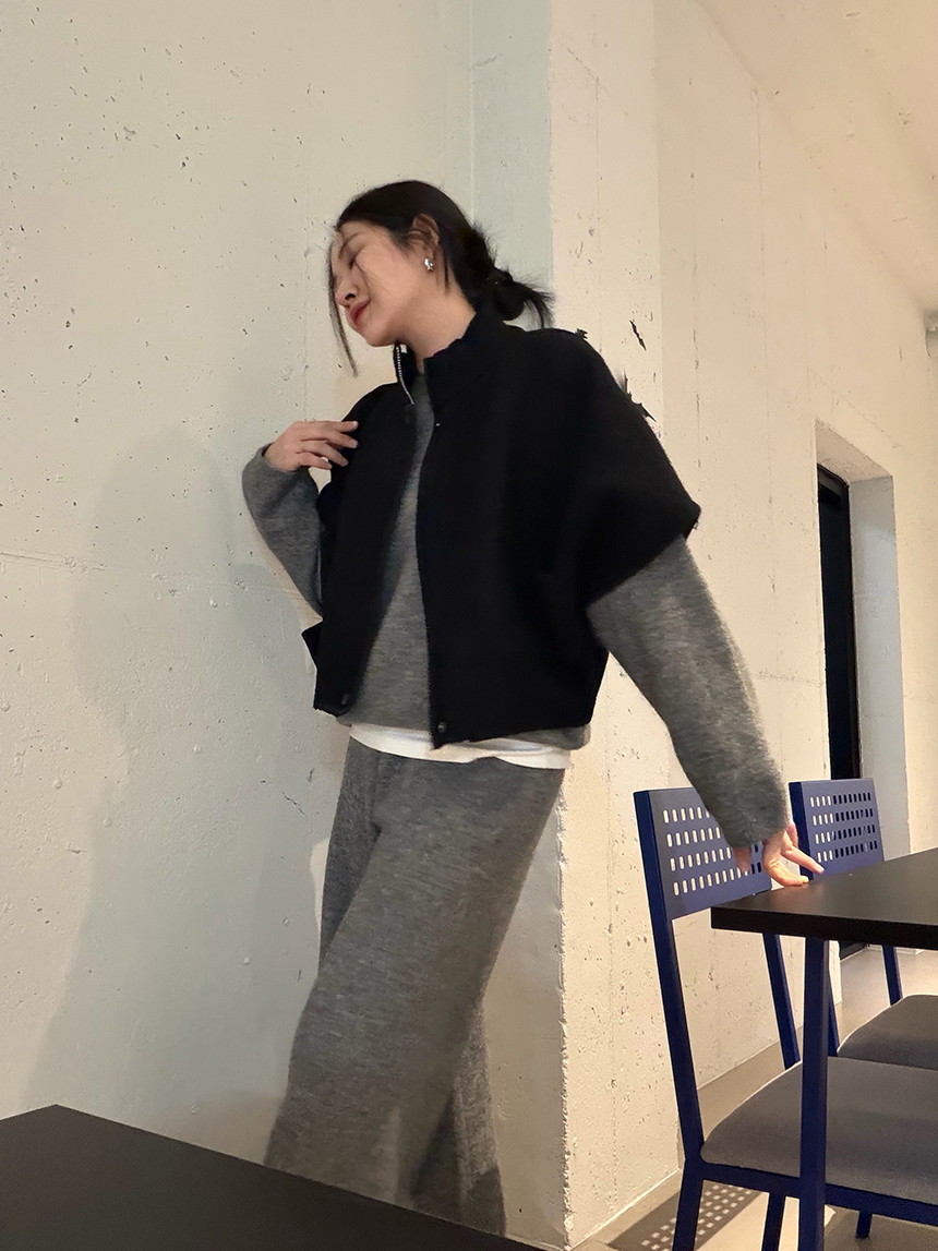 [소재] -울 폴리 스판 혼방을 압축한 소재 니트 조직이지만 보풀, 먼지 뭍음 전혀 없는 촘촘하고 부드러운 소재 (털빠짐 없음)