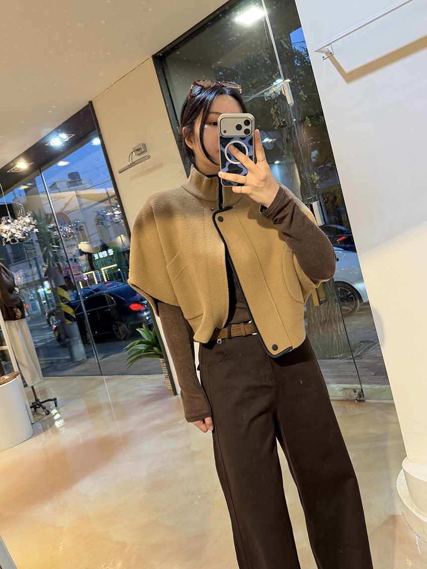 모델보다 매장 손님들 핏이 더 예쁜 케이프 스타일의 판초 자켓이예요