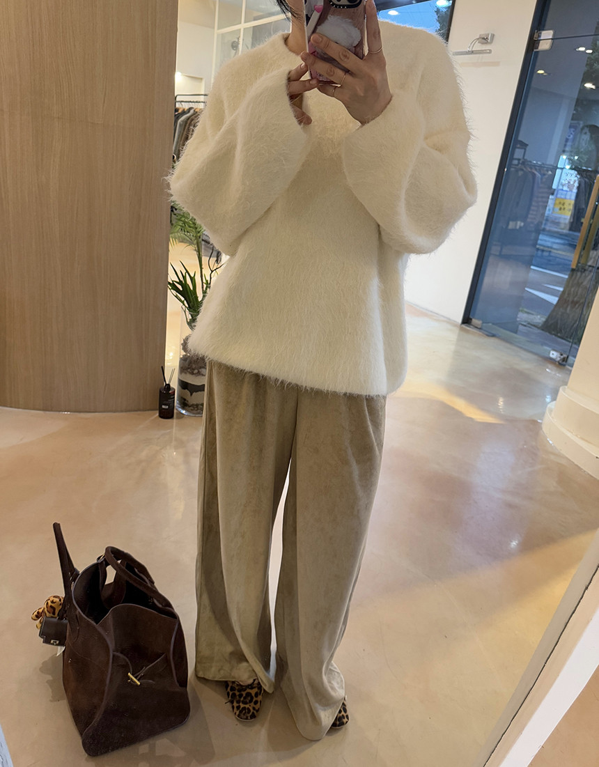 흔하지 않은 스웨이드 슬랙스 완전 소장템 코디하기도 너무 쉬워요-
