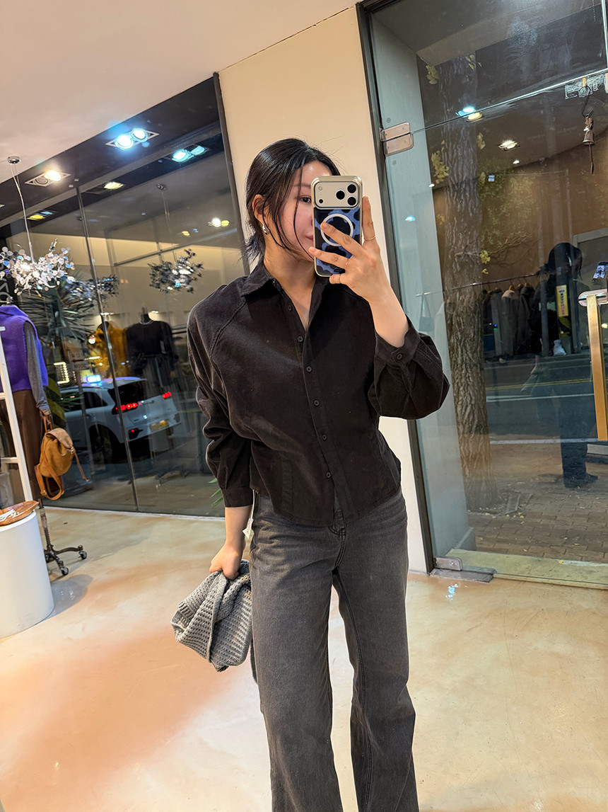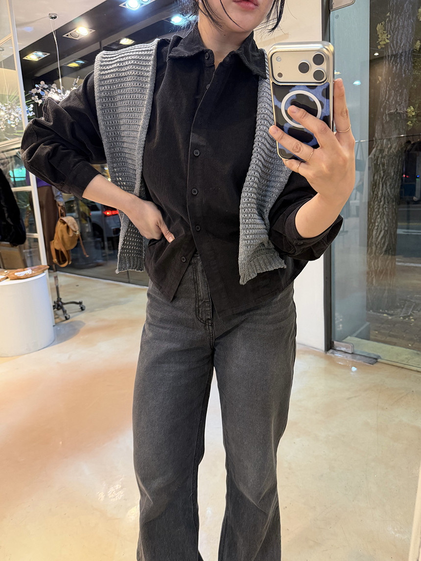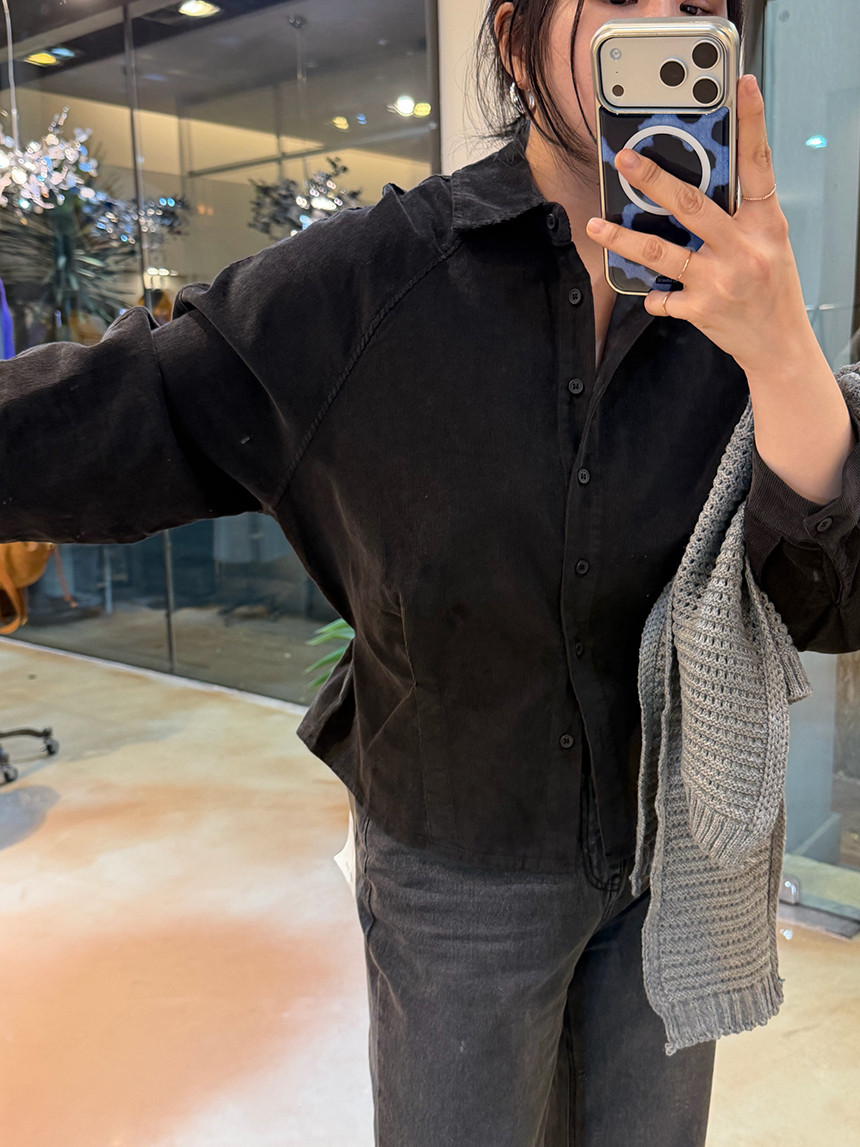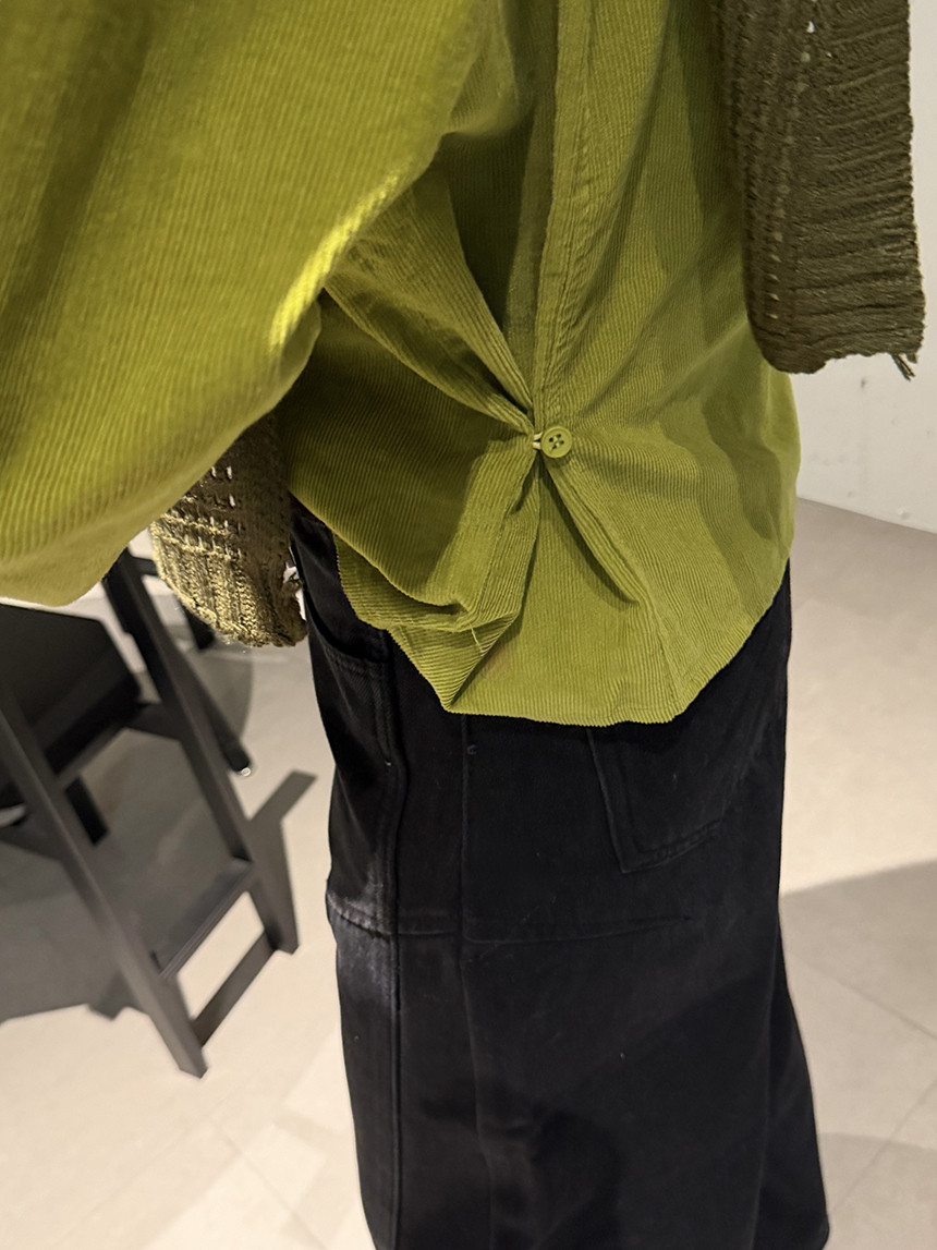 루즈핏 셔츠에 허리선 단추 포인트로 라인 조절 가능하며 포근하고 부드러운 코듀로이 골덴 소재로 가을 겨울 즐기기 좋은 적당한 두께감