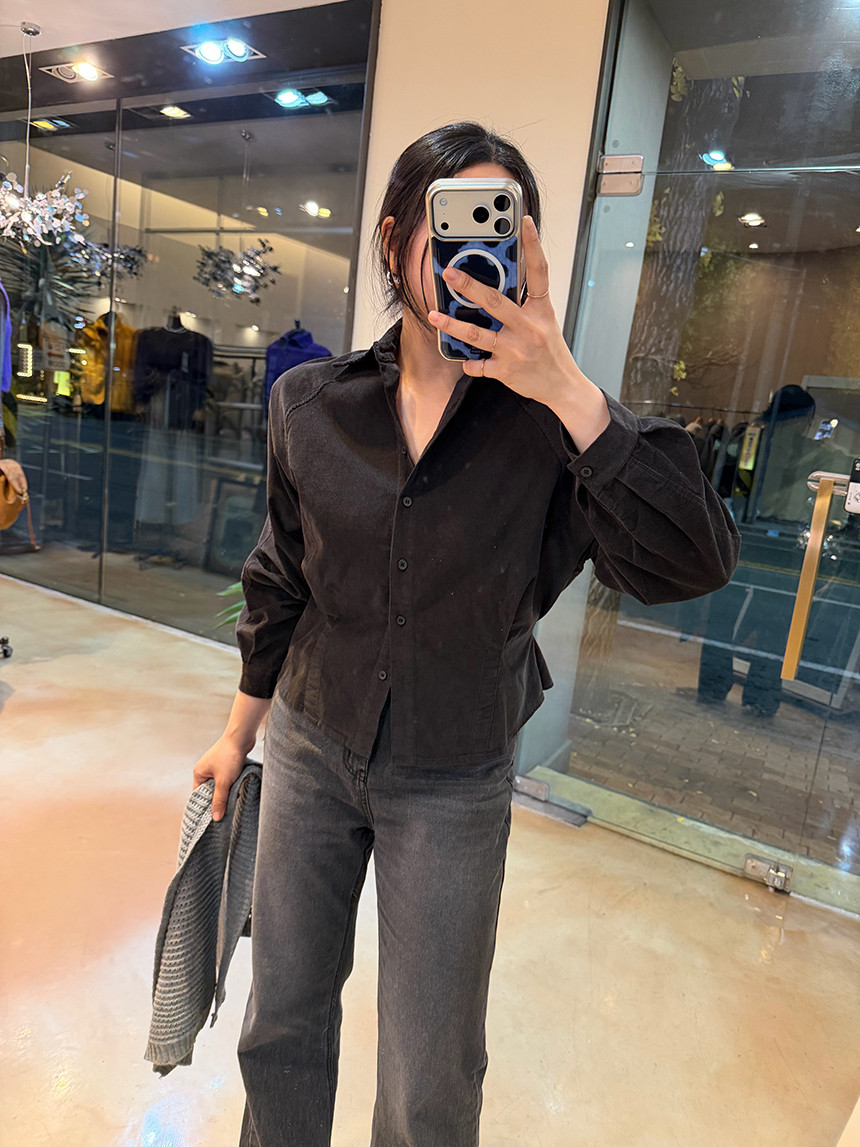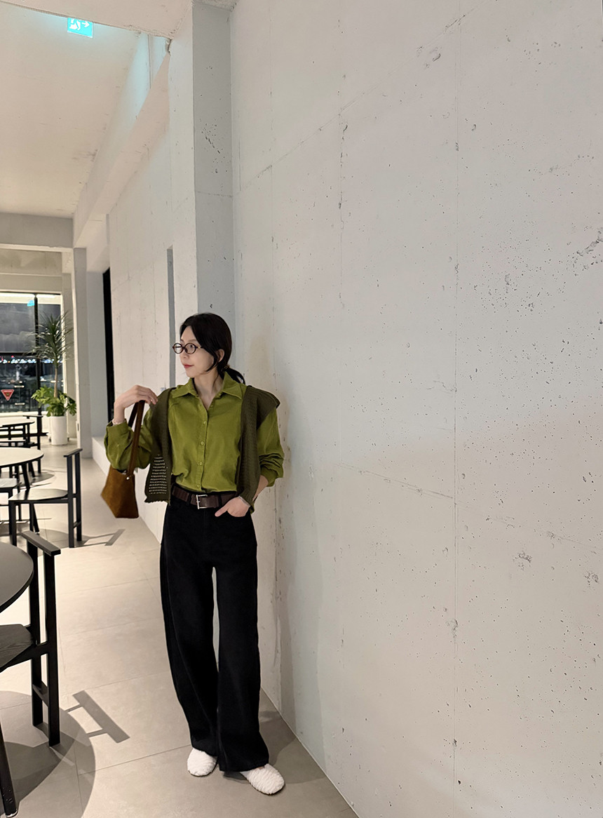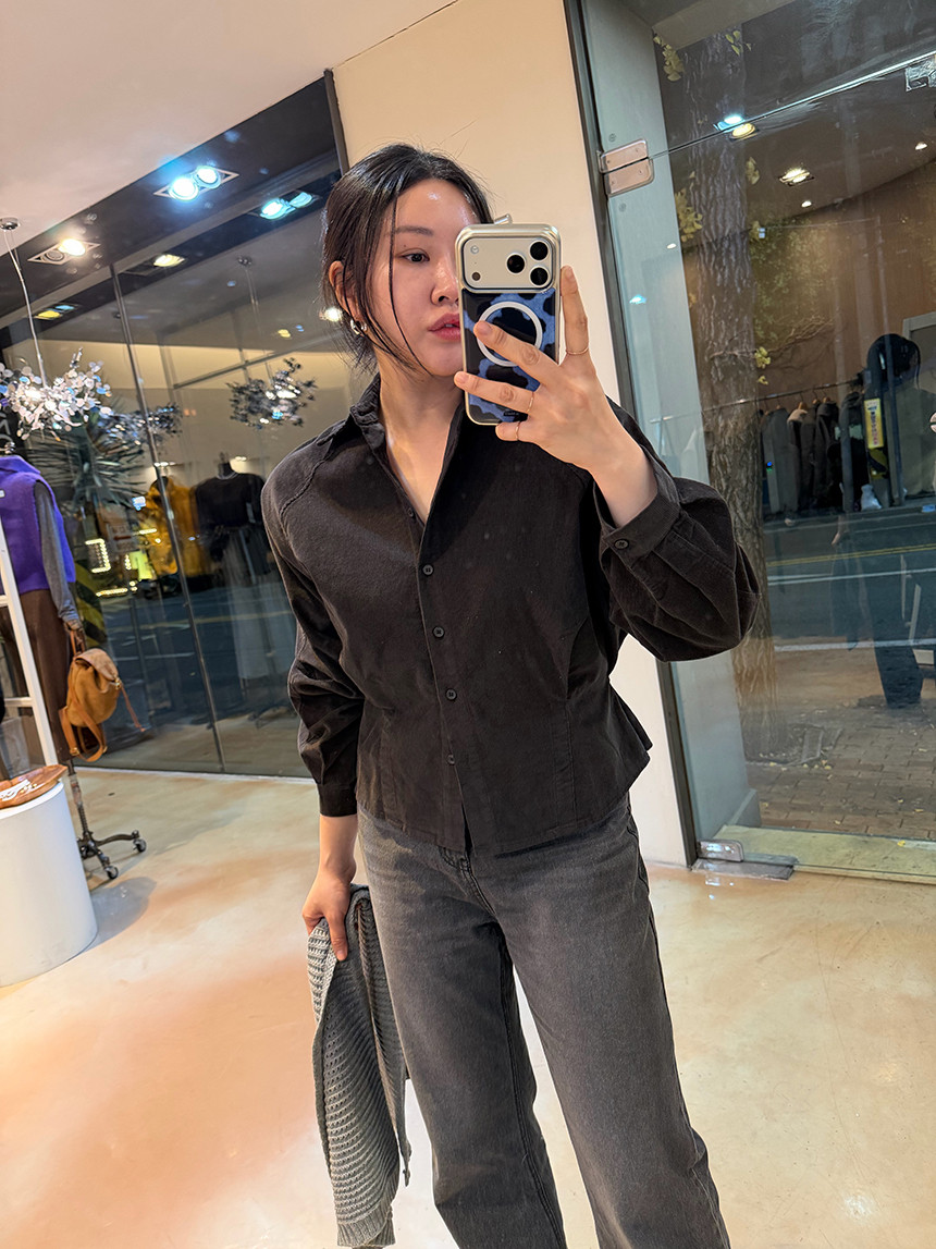 루즈핏 셔츠에 허리선 단추 포인트로 라인 조절 가능하며 포근하고 부드러운 코듀로이 골덴 소재로 가을 겨울 즐기기 좋은 적당한 두께감