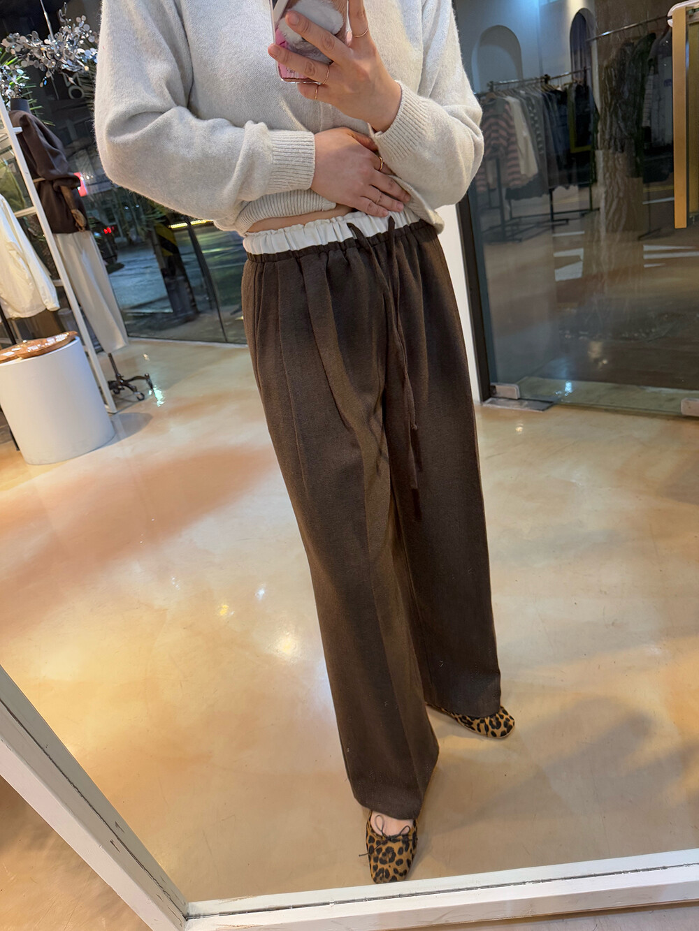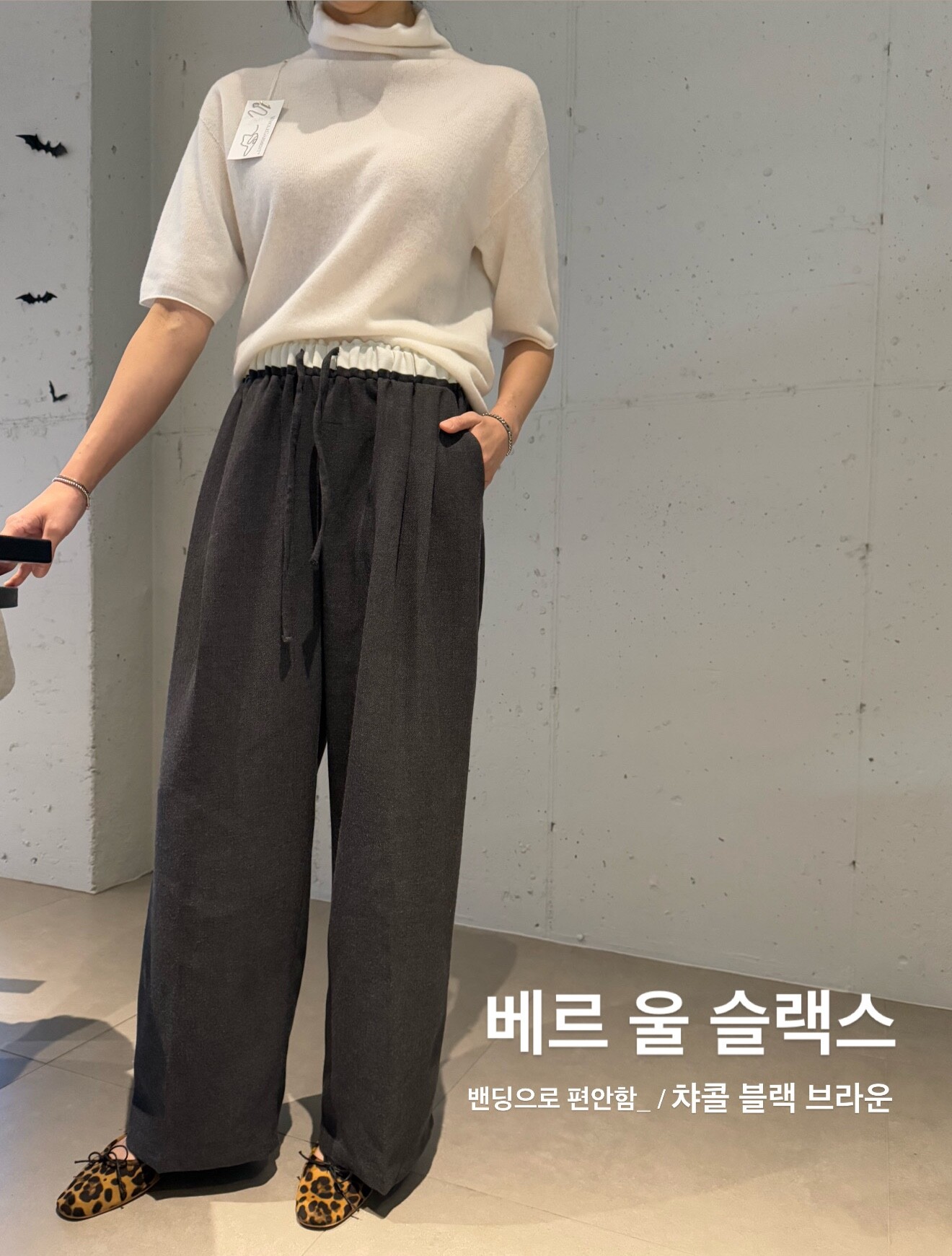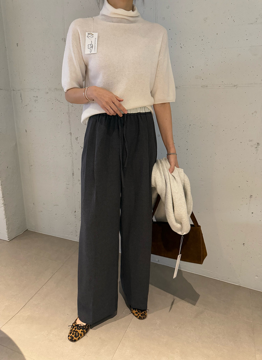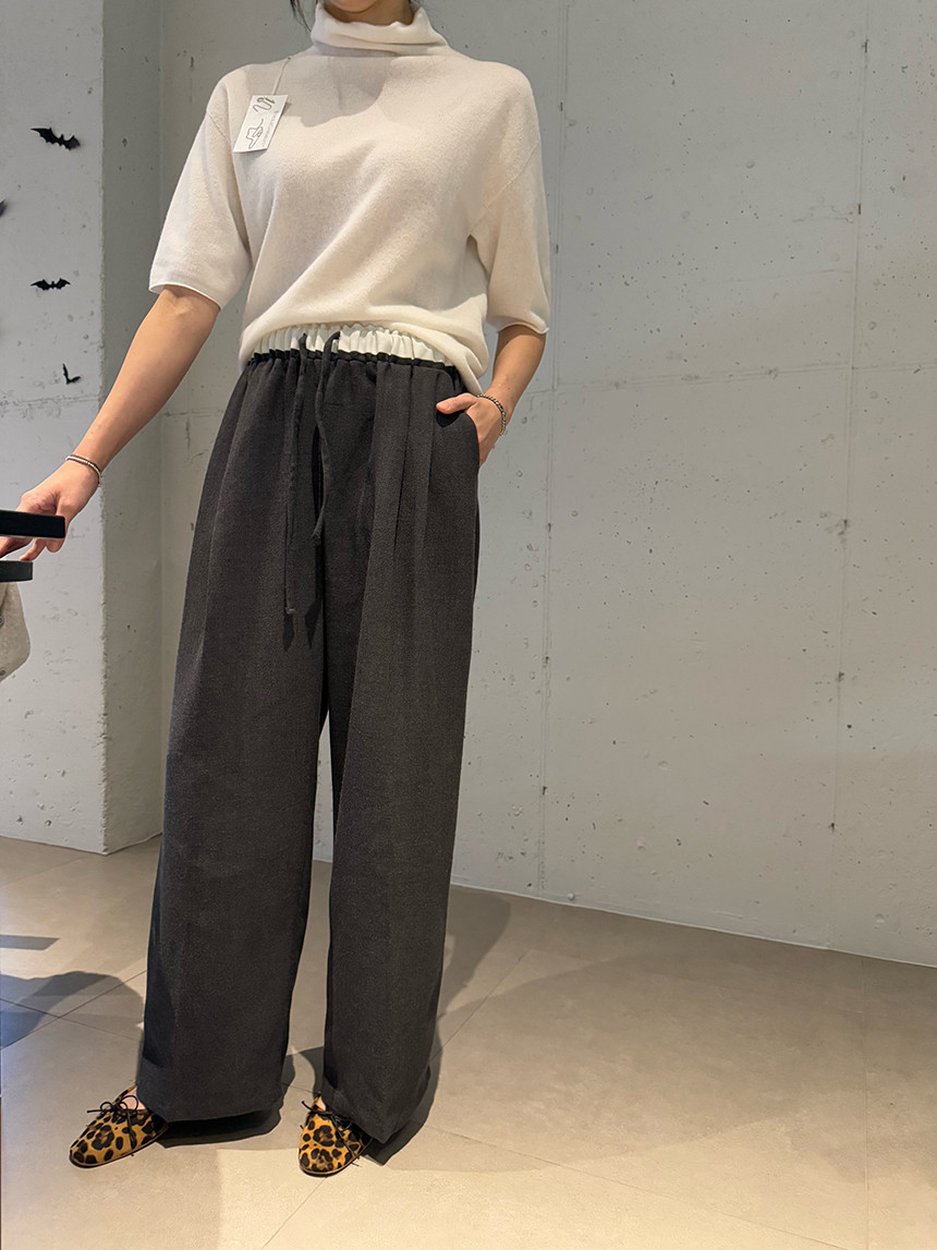 허리 배색과 울 혼방으로 따뜻하고 편안한 슬랙스-