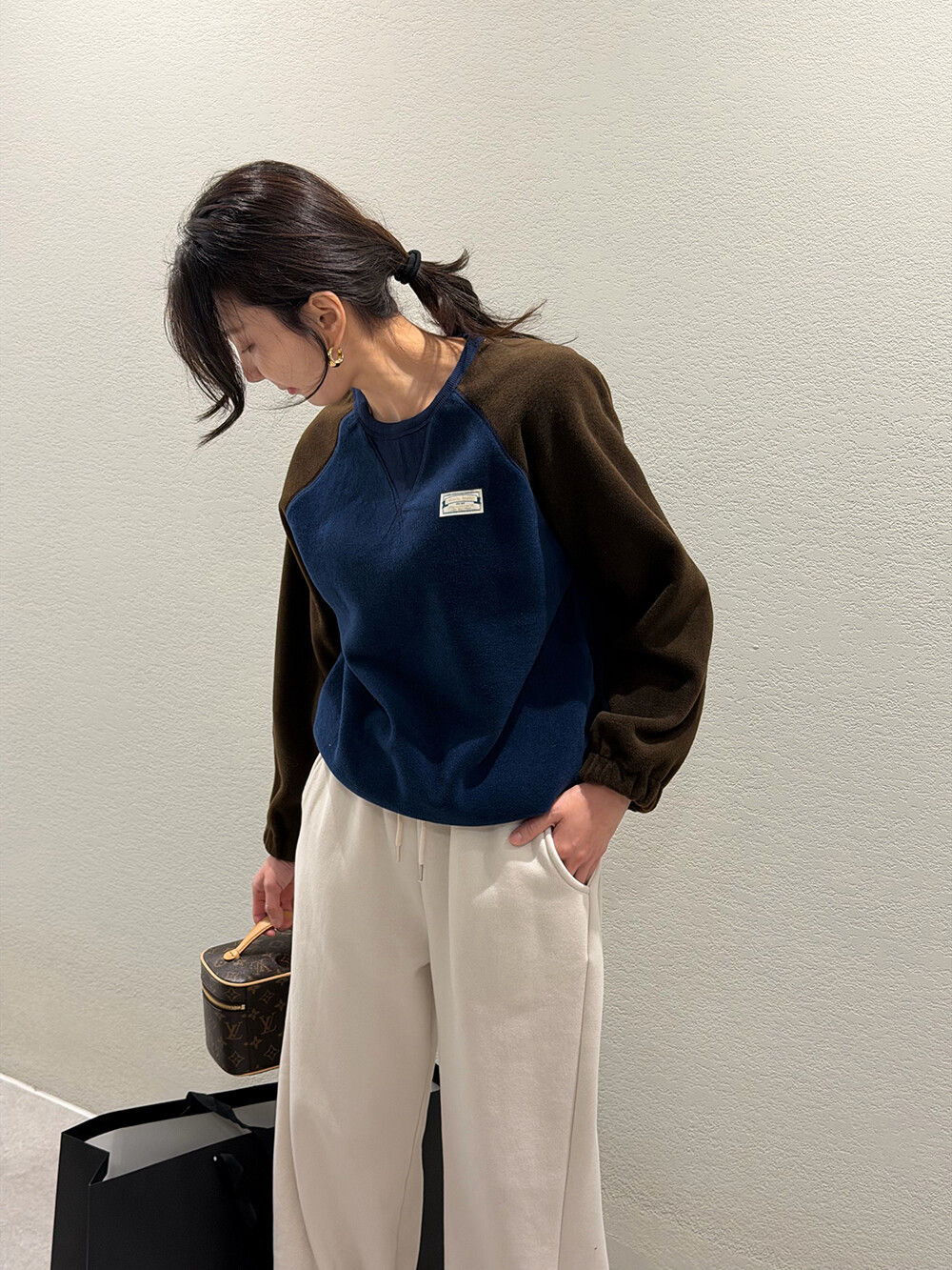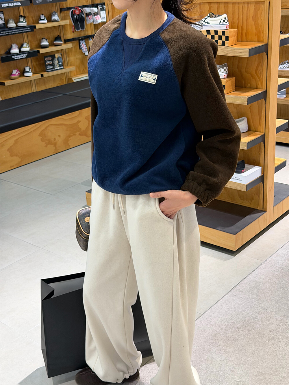 나그랑 컬러 배색으로 포인트_ 후리스 맨투맨으로 캐쥬얼한 코디