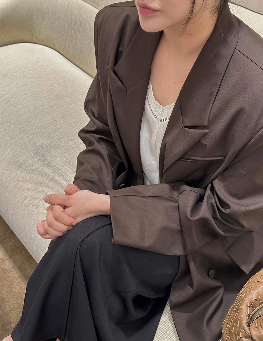 실키한 텍스처로 완성된 클래식 오버핏 자켓, 스트라이프 안감으로 세련된 포인트