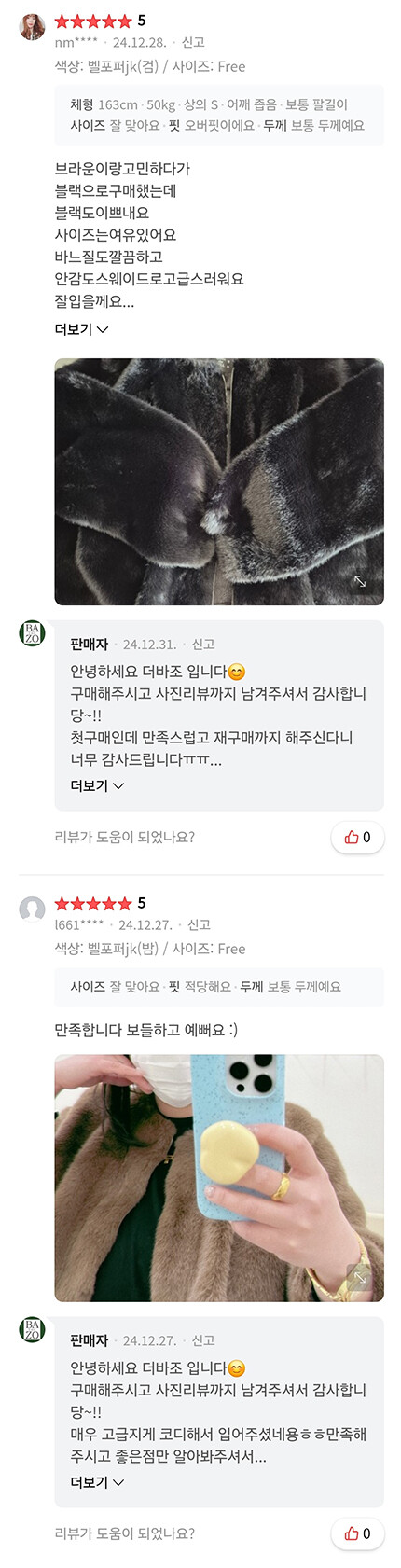 ✔ 무스탕안감 ■ 있음 □ 보통 □ 없음