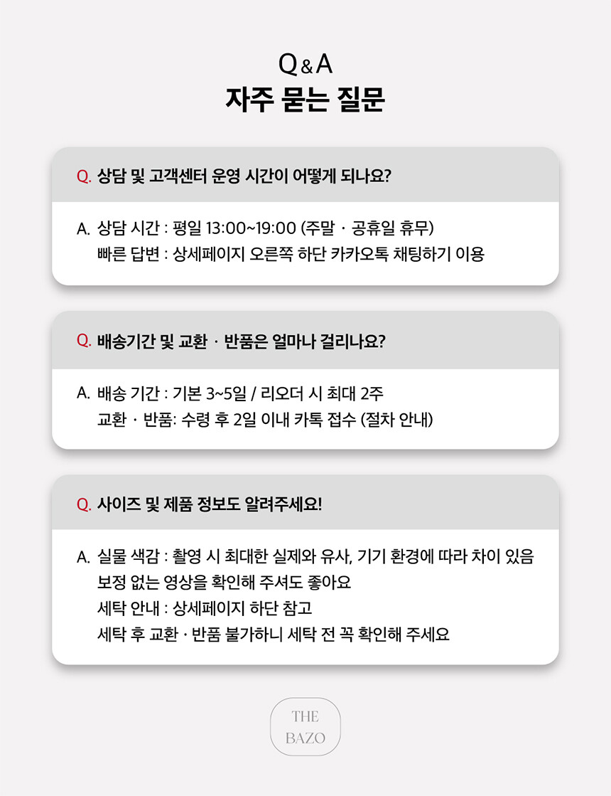 반품 주소 ㅣ 경상북도 포항시 북구 학산로 82 1층 BAZO
