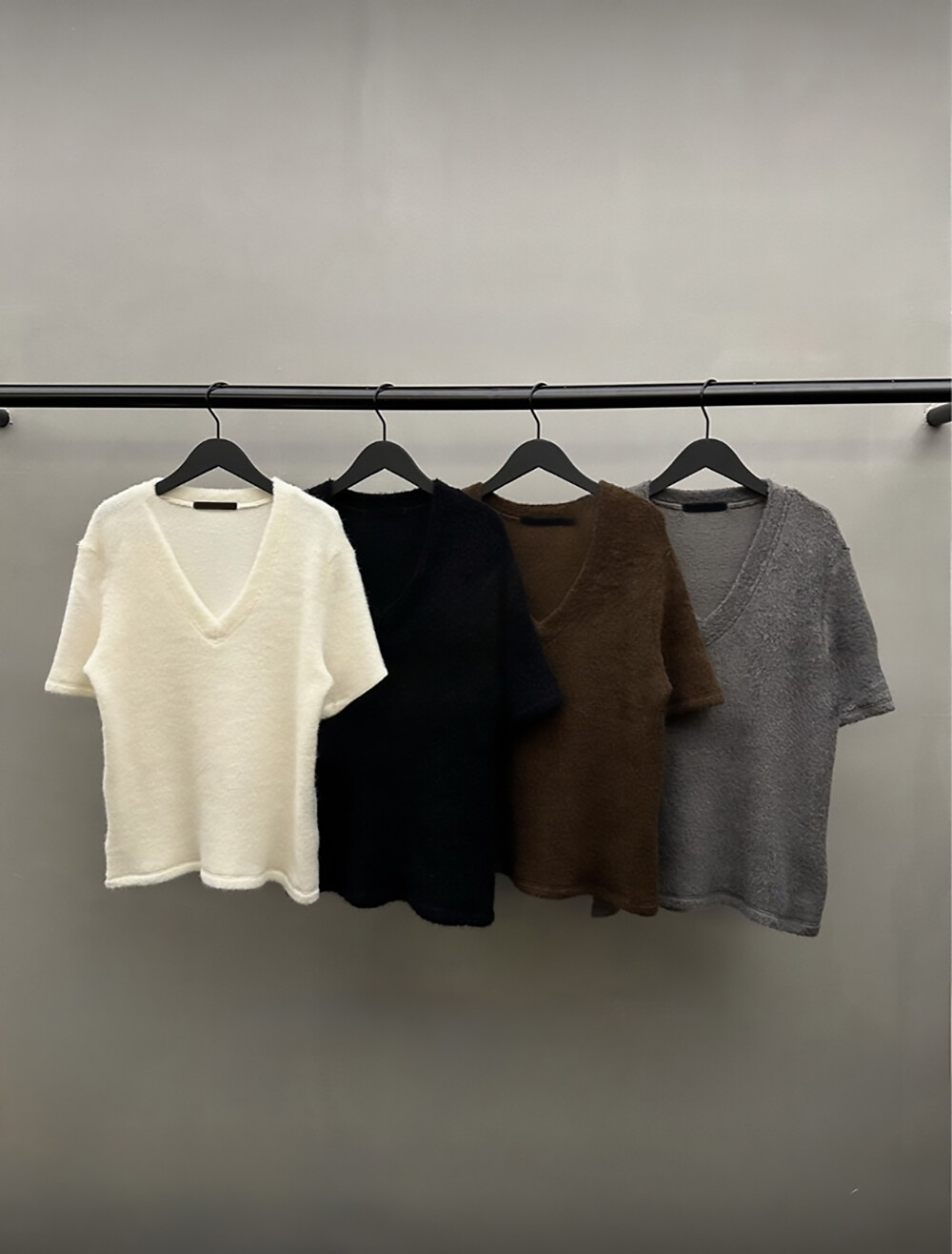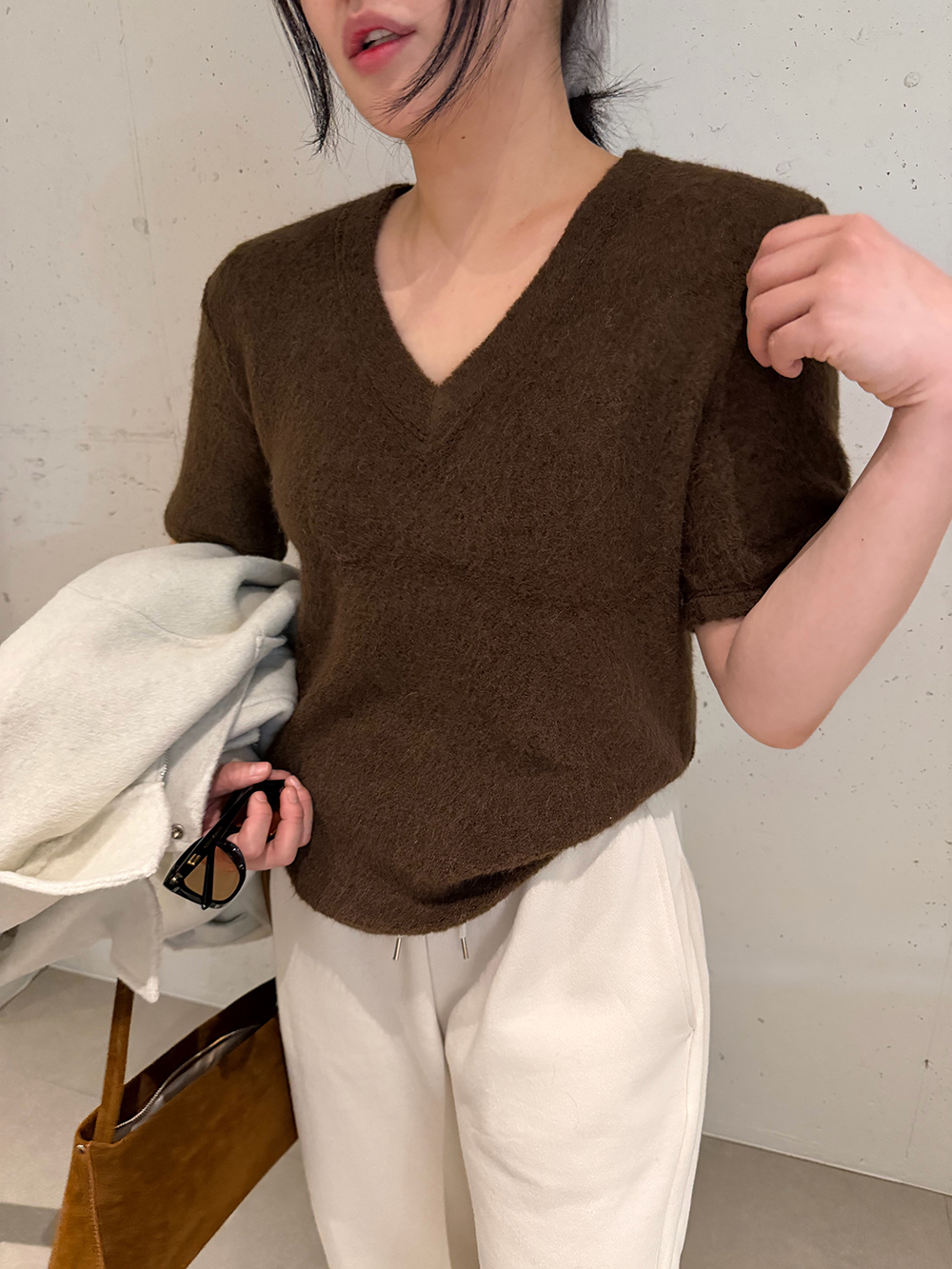 브이넥으로 여리여리함 UP+ 아우터 속 활용도 너무 좋은 니트 반팔티-