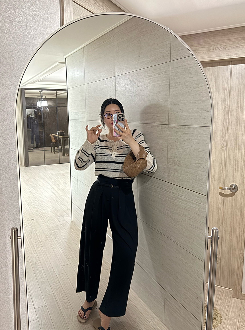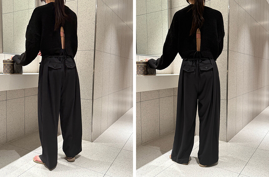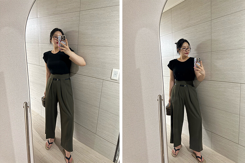 하이웨스트로 허리 라인을 강조해 좀 더 볼륨감있는 실루엣 연출도 가능해요