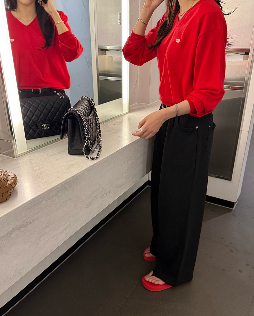 답답함 없는 브이넥 라인으로 이지한 스타일링이 완성돼요
