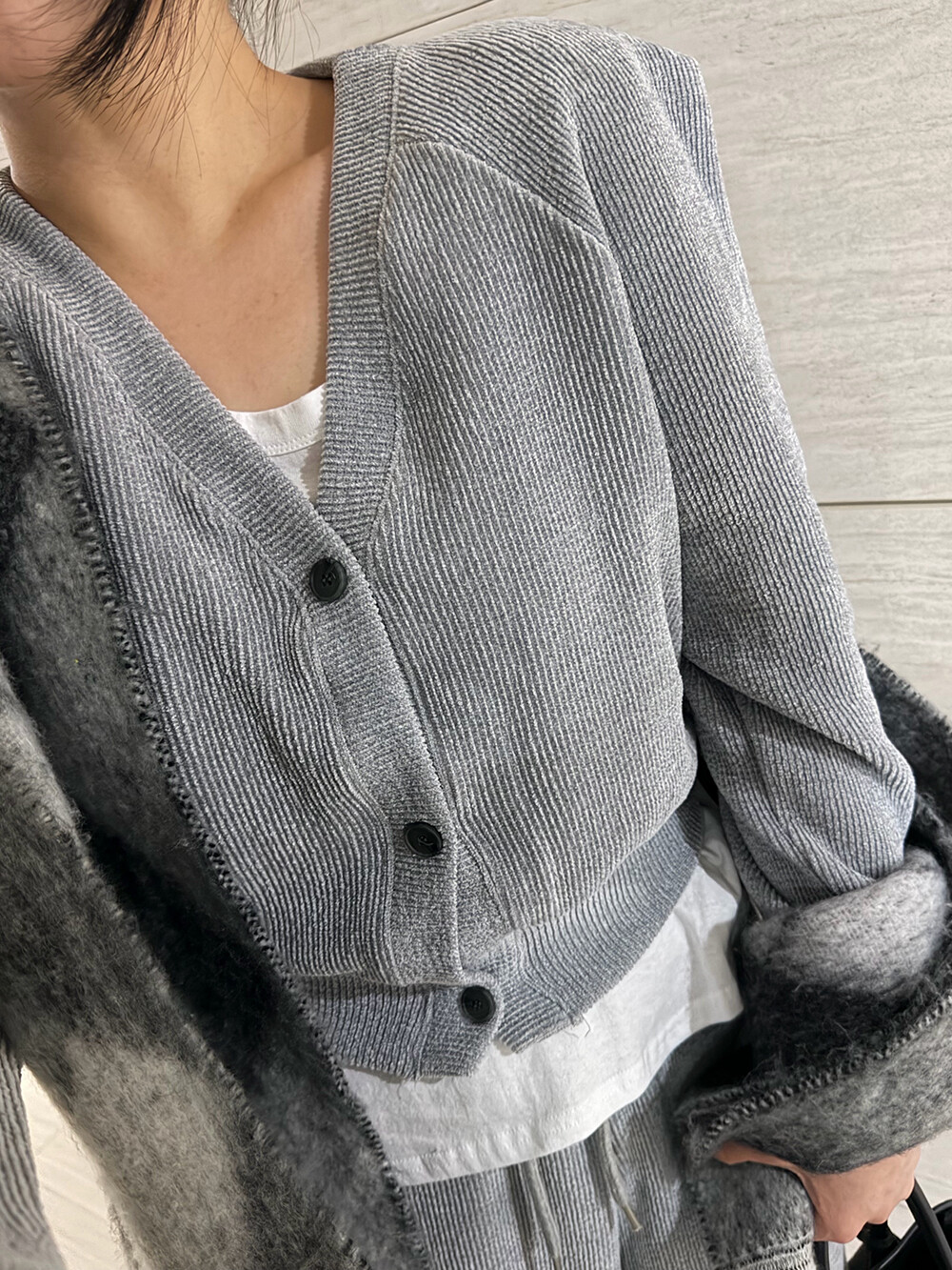 V넥 라인으로 목선을 길어 보이게 도와주며