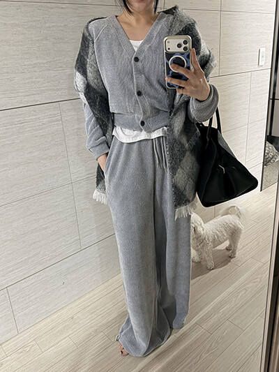 벨로아와 골덴의 중간 느낌? 쫀득하니 신축성도 좋고 골지 느낌이라 늘씬해 보여요