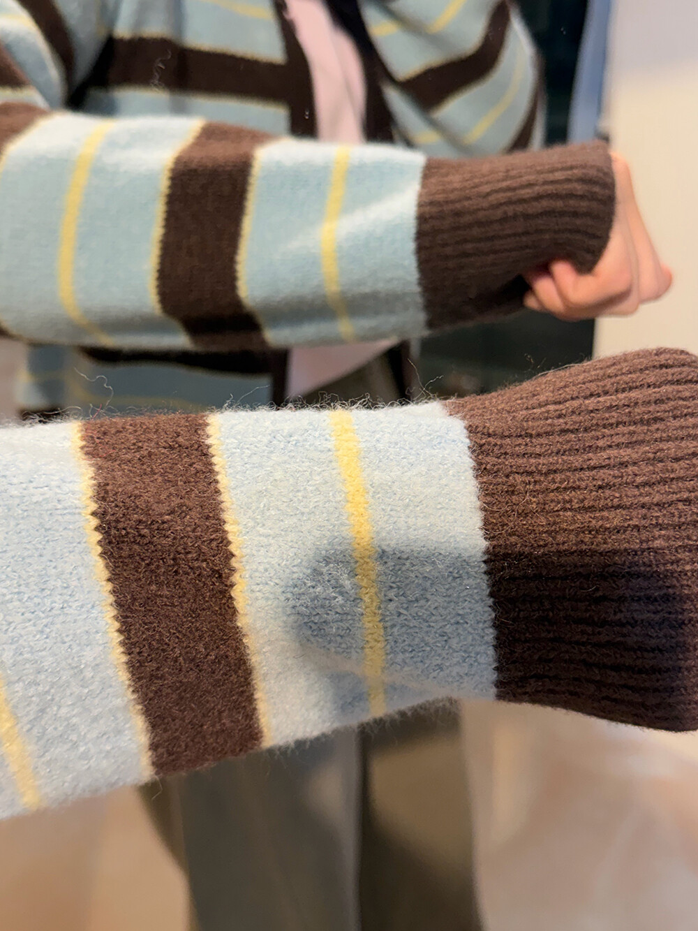 배색이 예쁜 단가라 니트 가디건 도톰한 원사로 하나만 입어도 은근히 따뜻하고 부들한 착용감