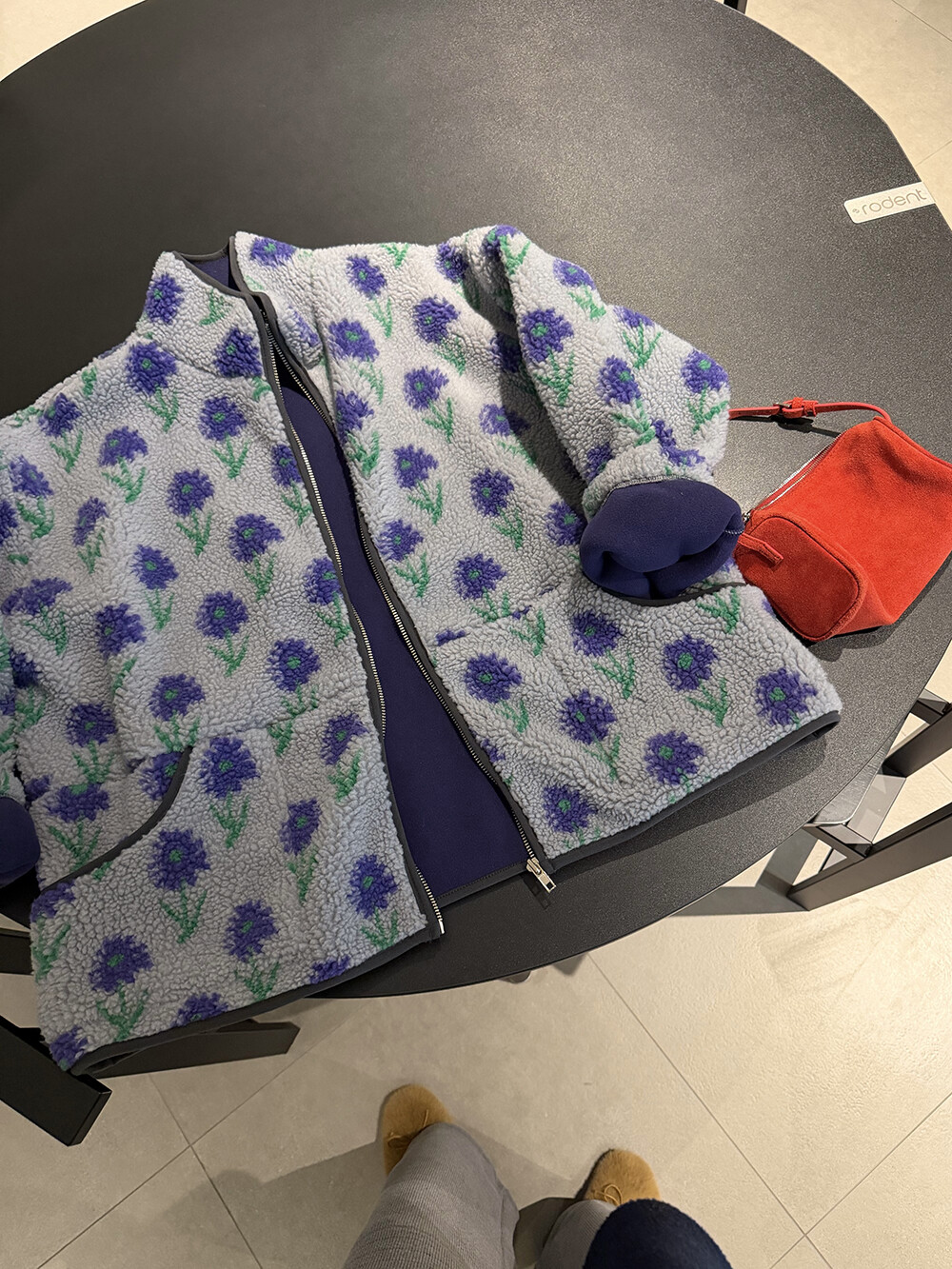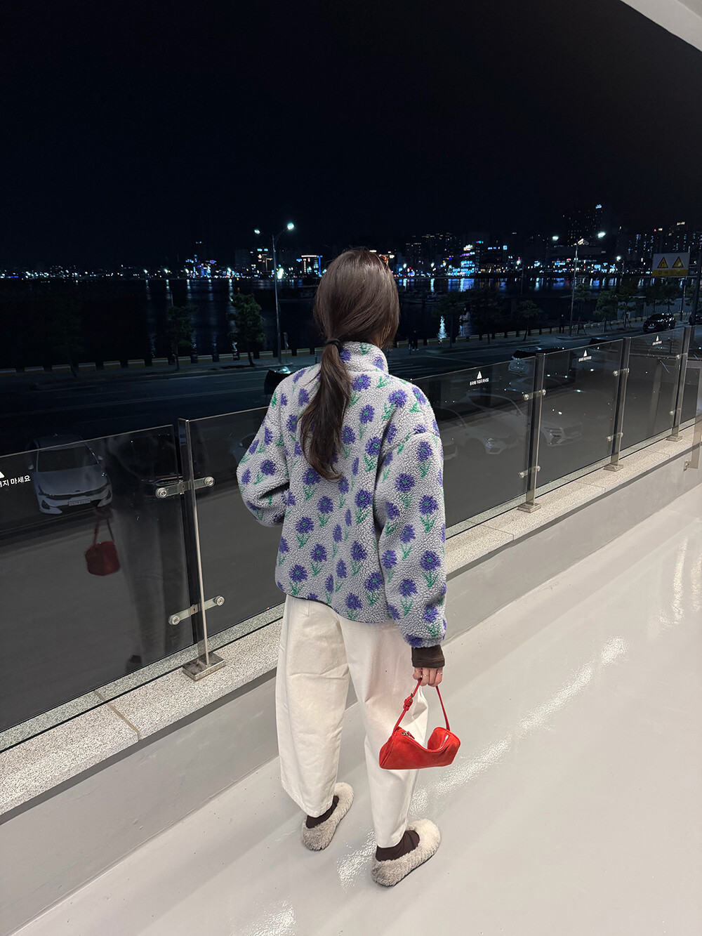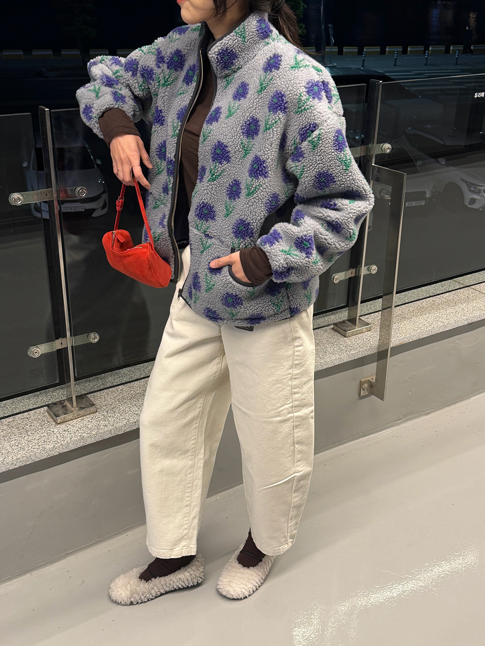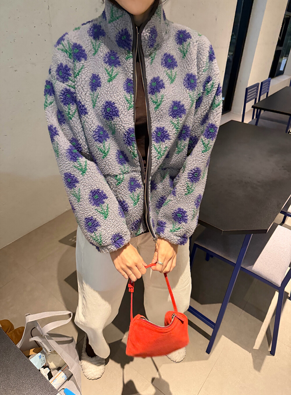 흔치 않은 꽃 프린팅 뽀글이 점퍼로 귀염 뽀짝! 이중 합포 후리스 안감으로 더욱 따뜻해요