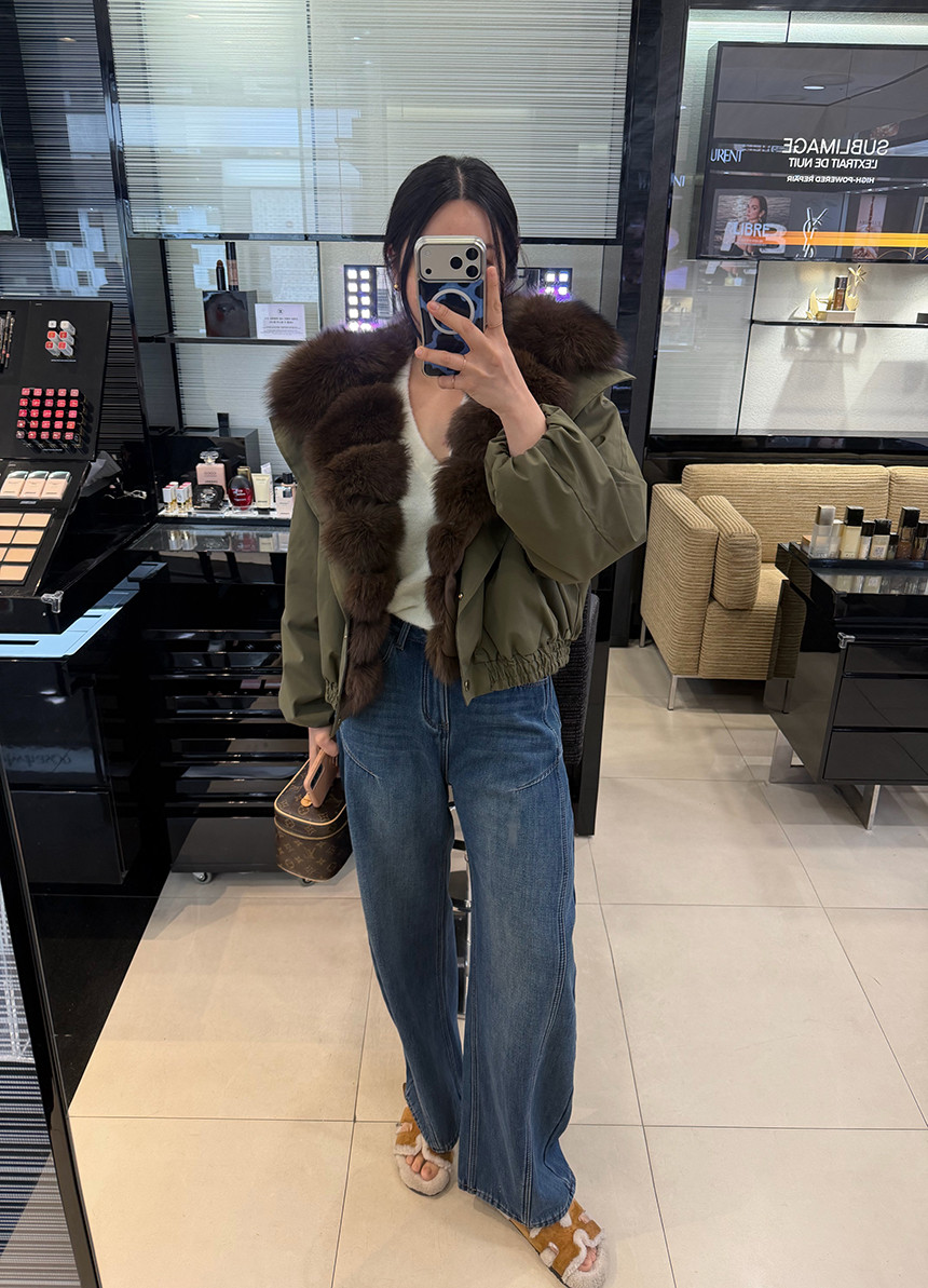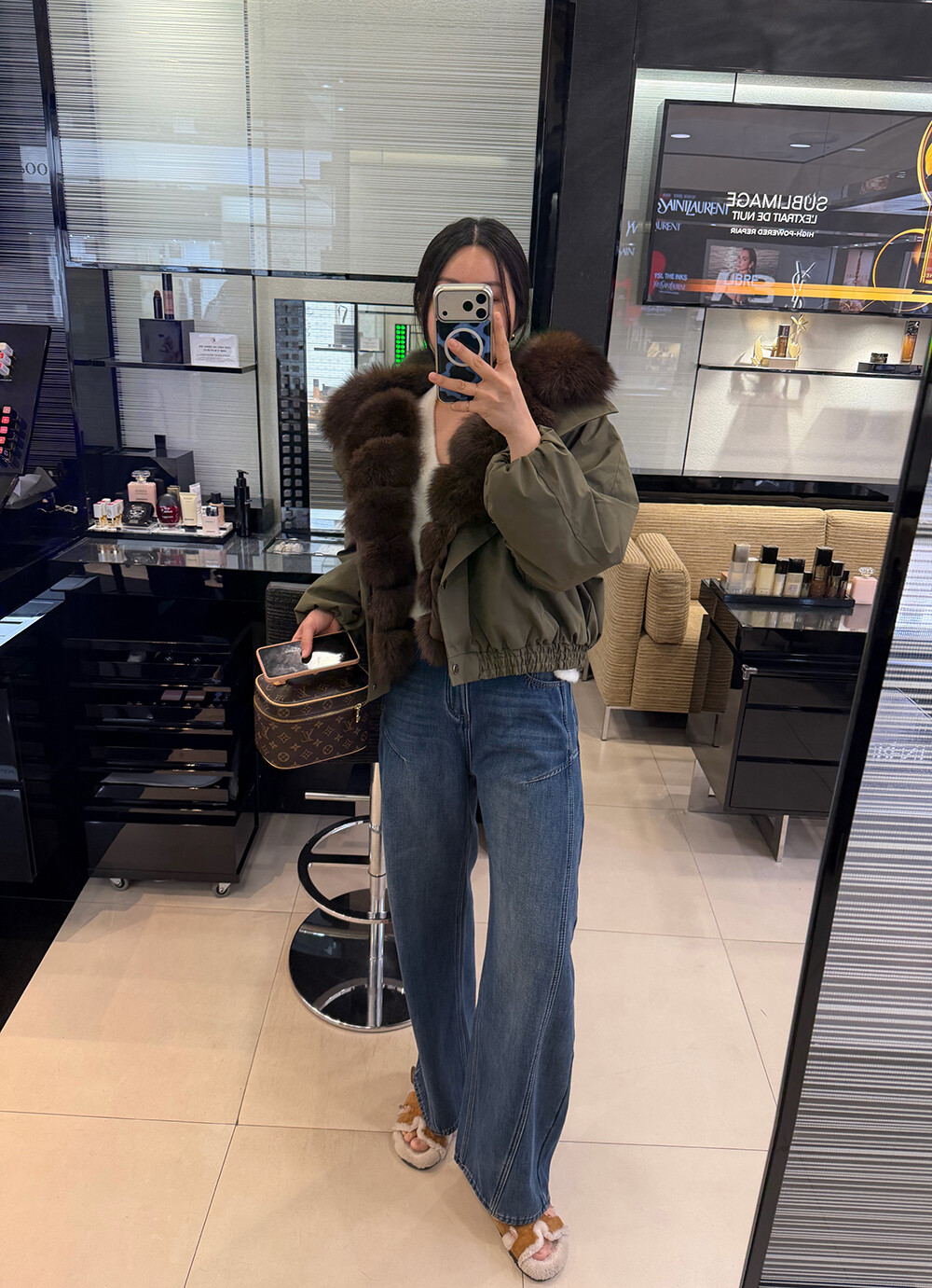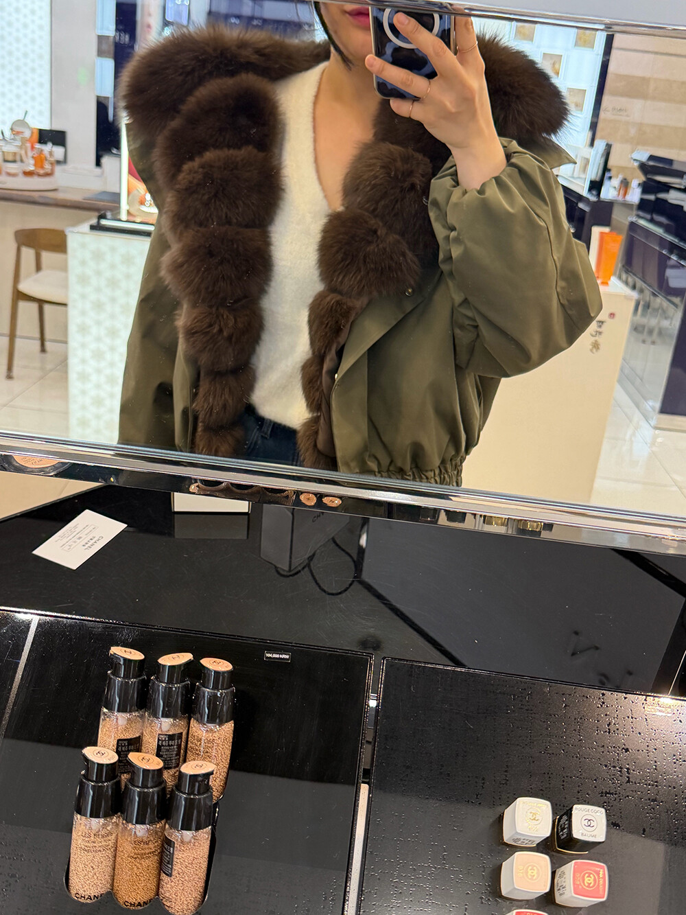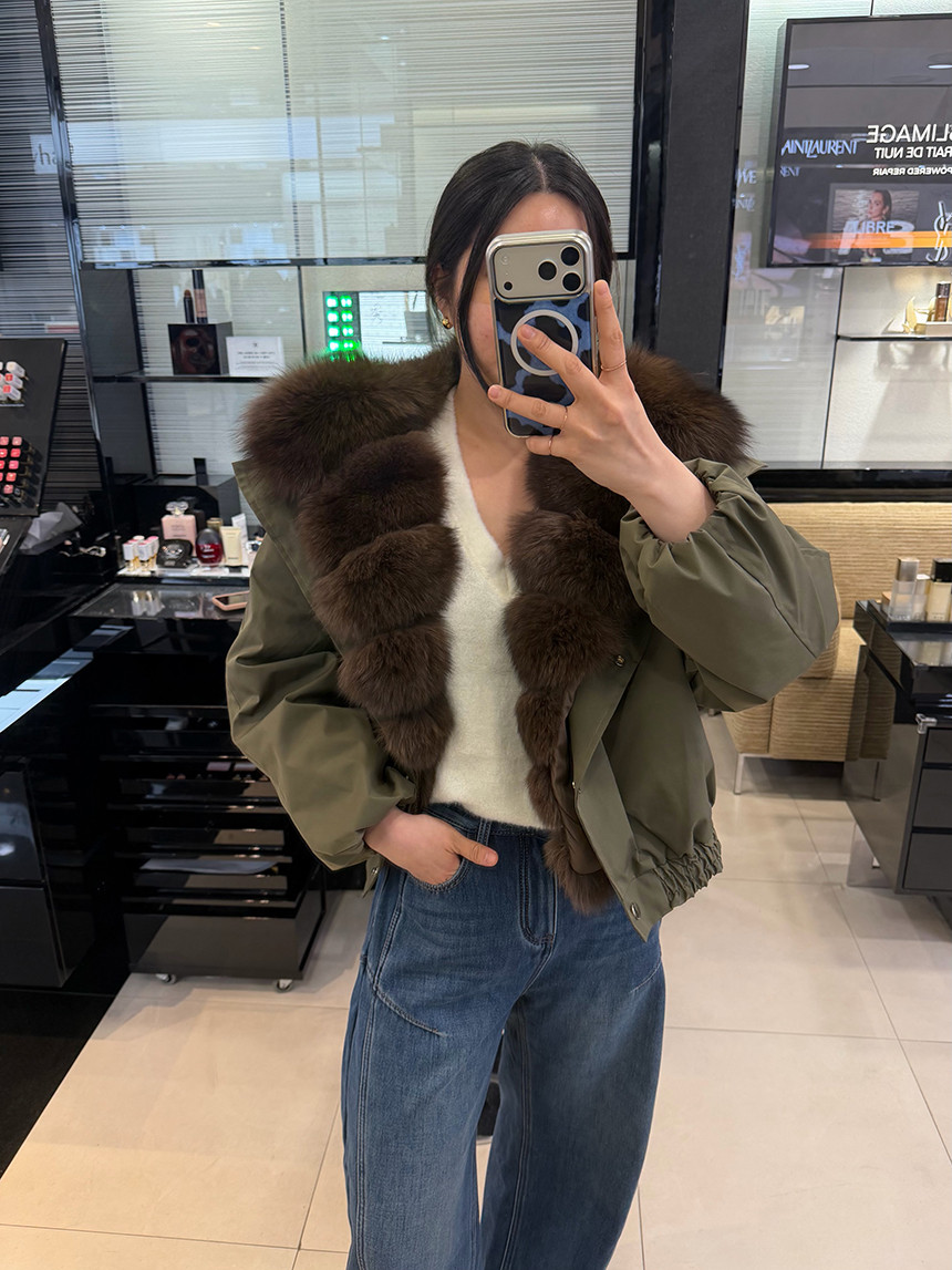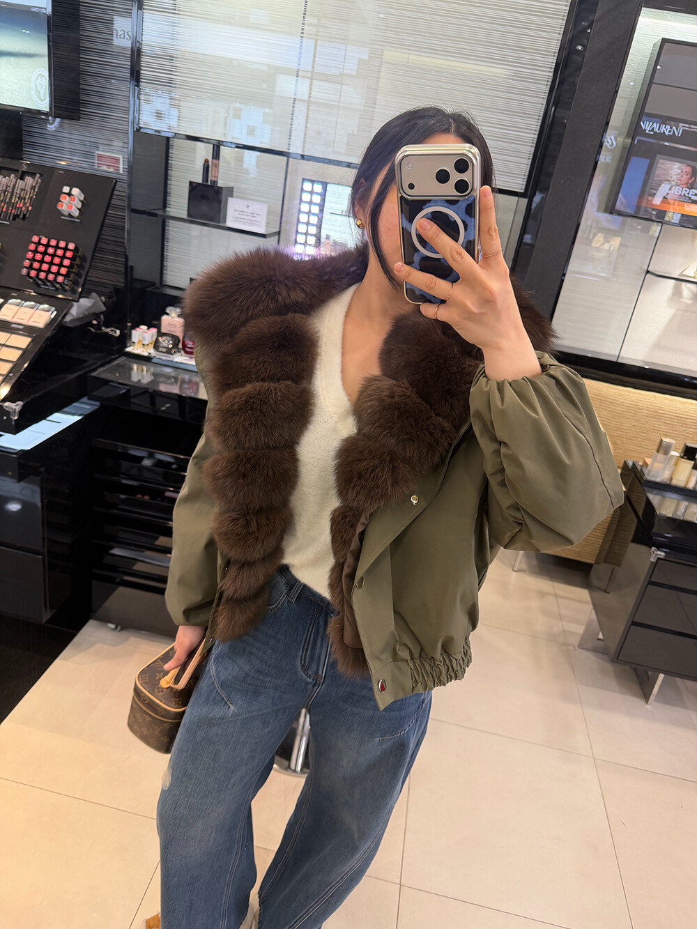 완벽한 럭셔리함, 구스다운 + 리얼폭스퍼 조합의 항공 점퍼 스타일 패딩