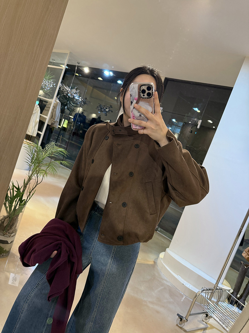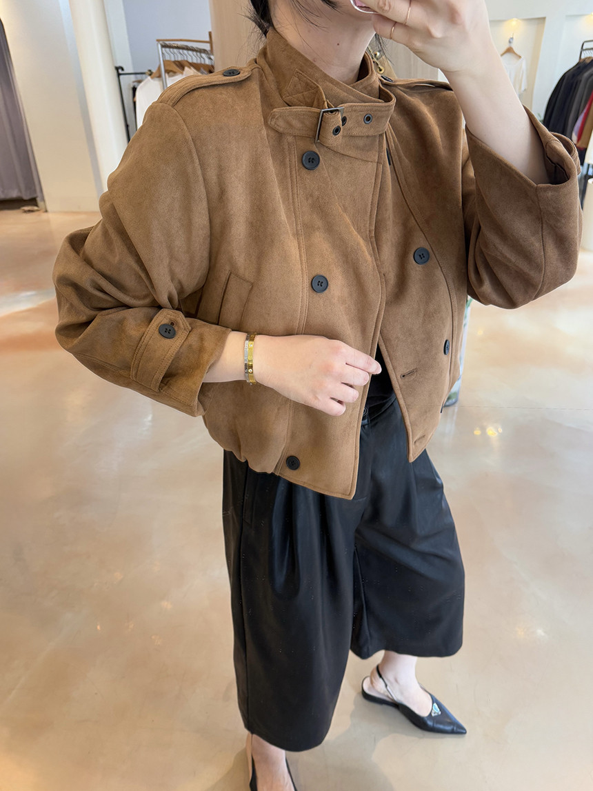 [디자인] 숏 바바리 스타일로 나온 스웨이드 자켓