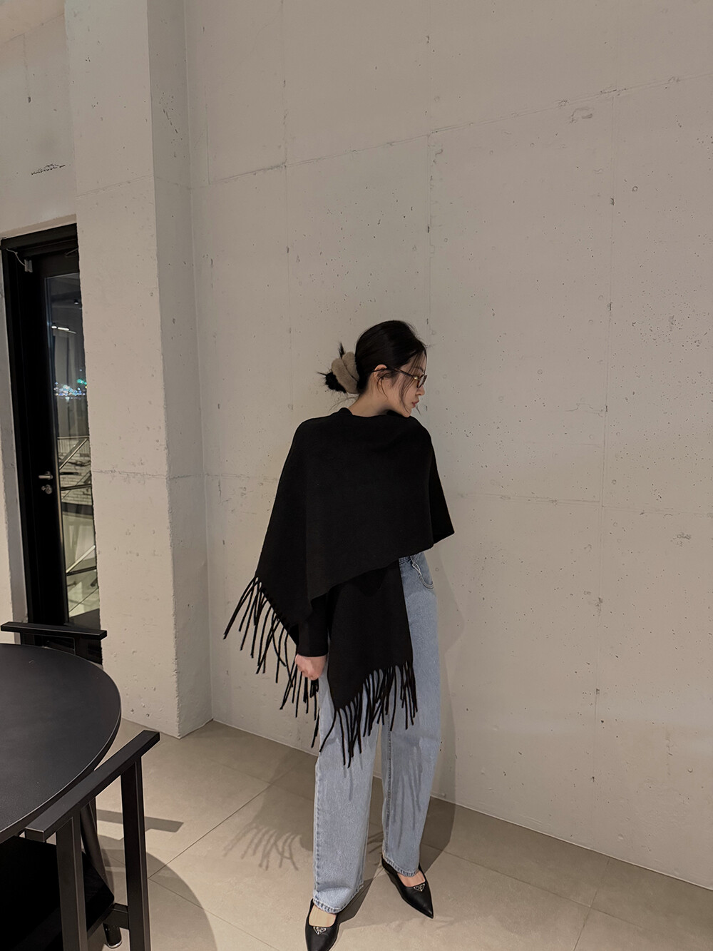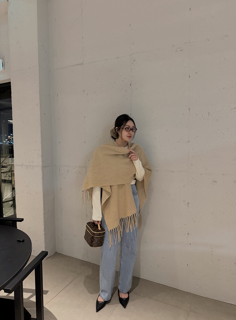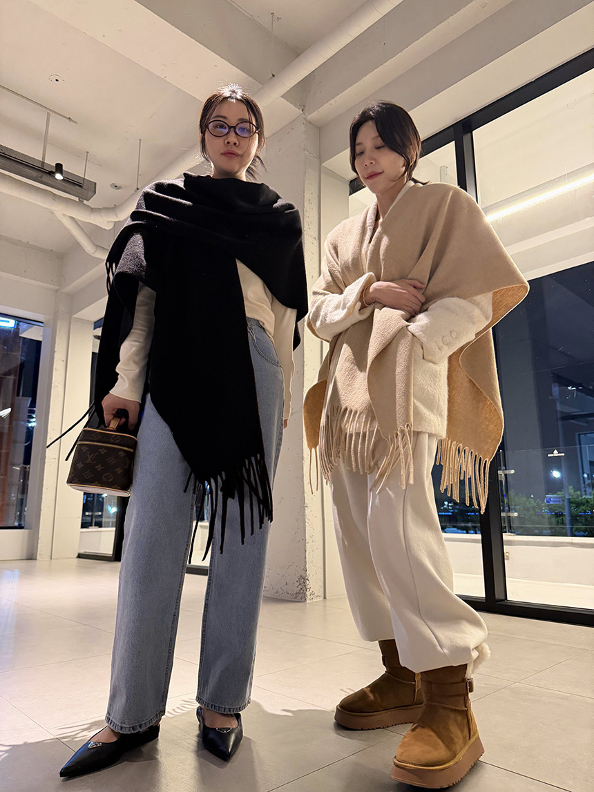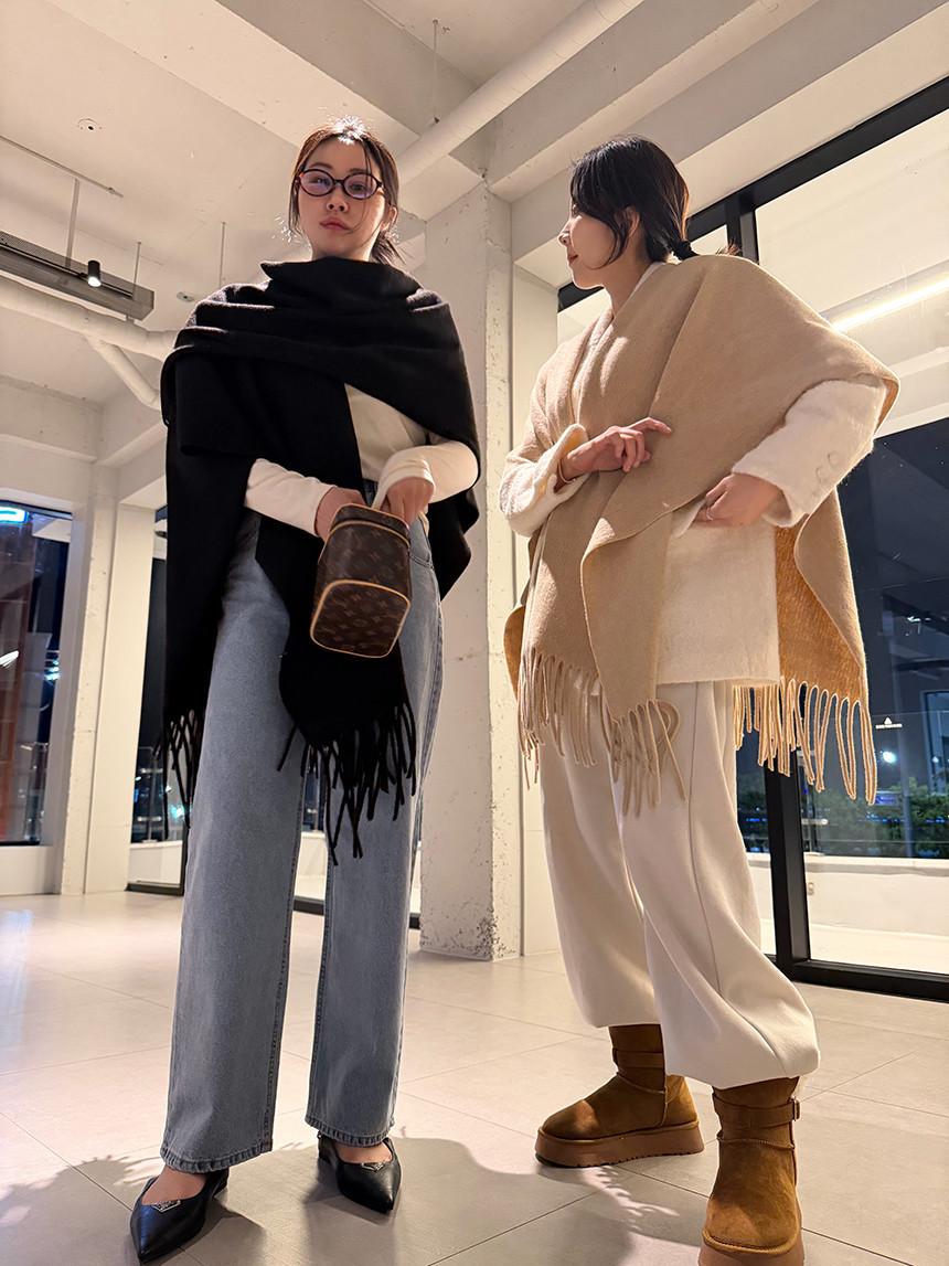 사무실이나 실내에서는 분위기 있으면서 따뜻해 보이는 숄로 활용하셔도 좋아요 |
