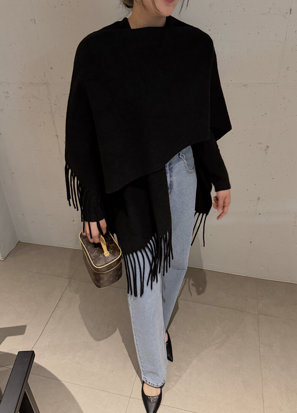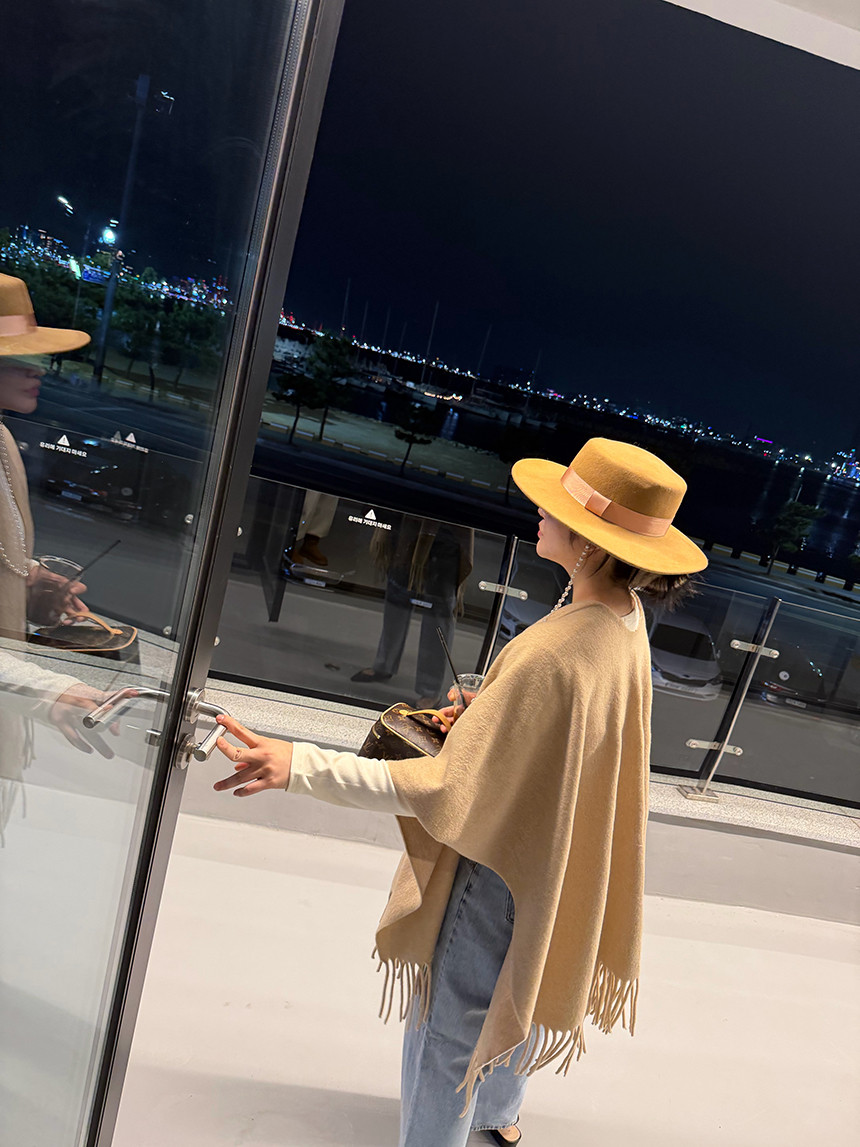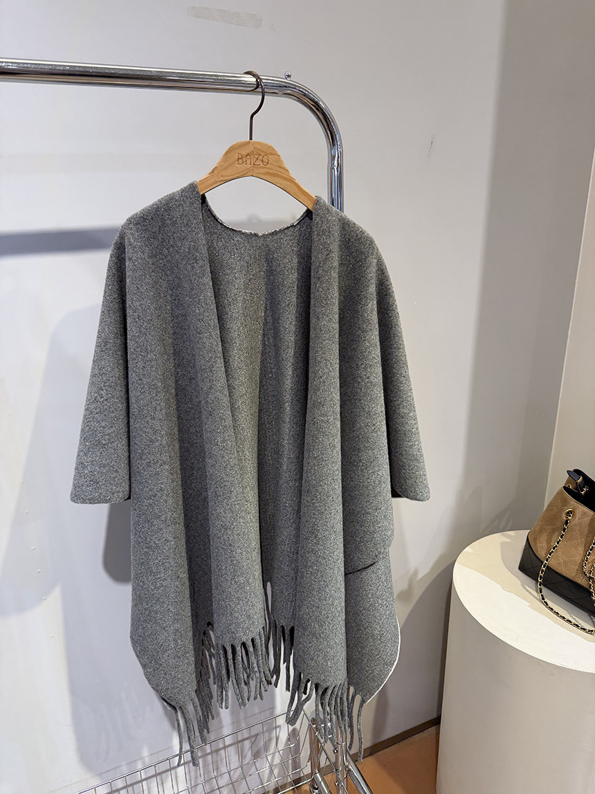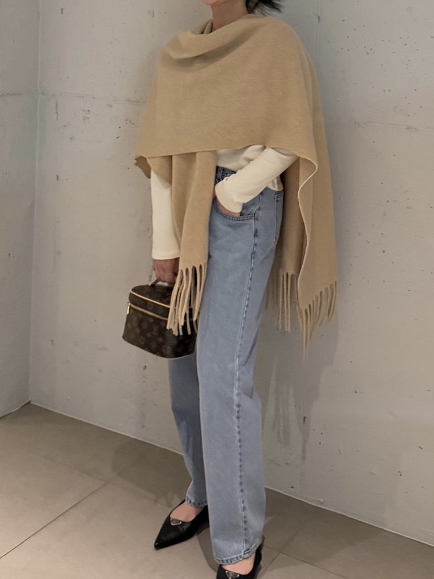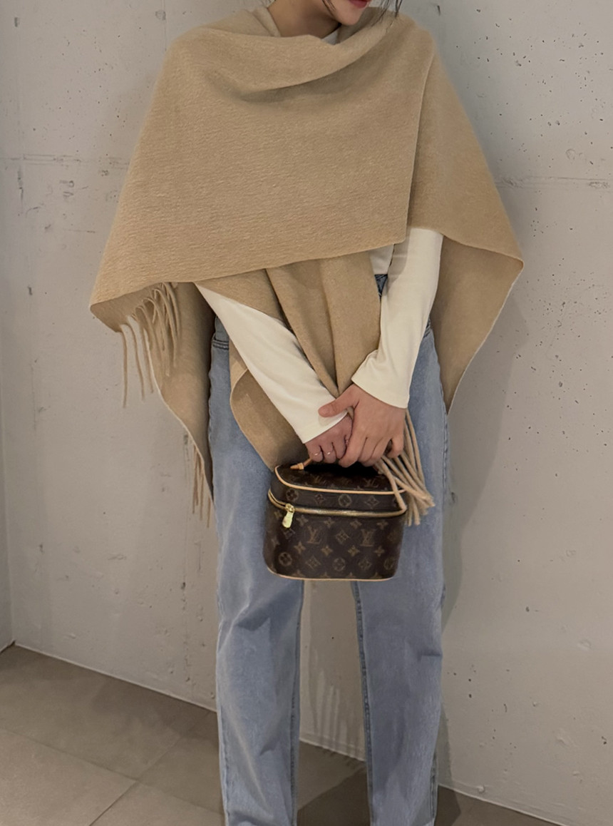 코트처럼 입을 수 있는 긴 숄 형태로, 어깨선을 부드럽게 감싸