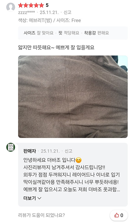 ✔ 두께 □ 두툼 ■ 보통 □ 얇음